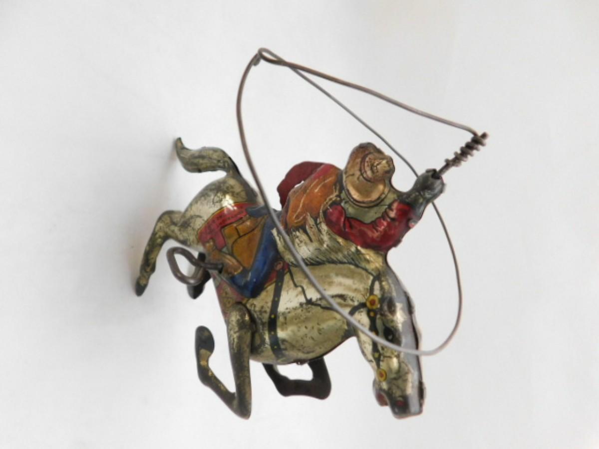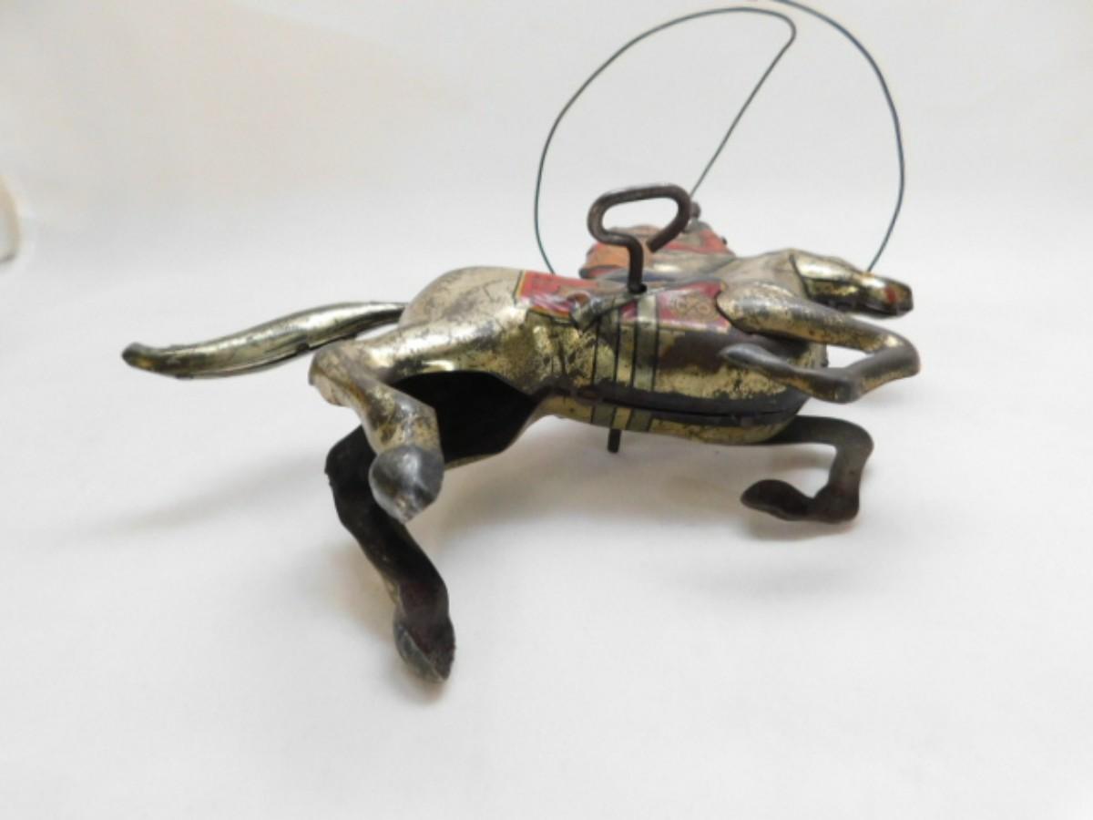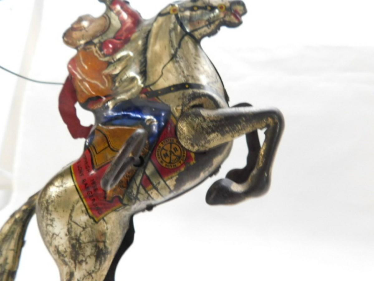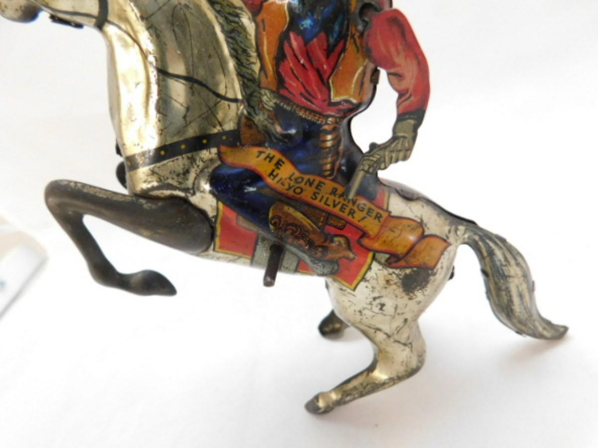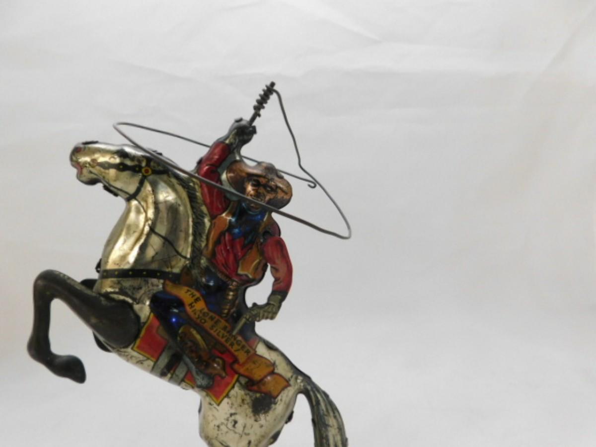 Vintage Marx Hi-Yo Silver Lone Ranger Wind Up Tin Toy some wear to paint but appears to be in working condition