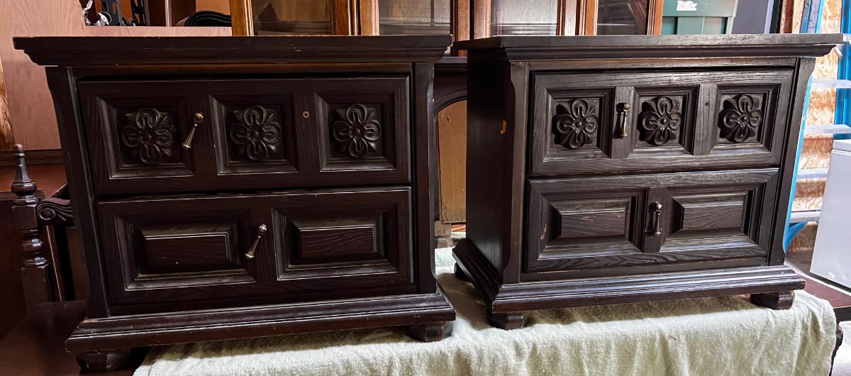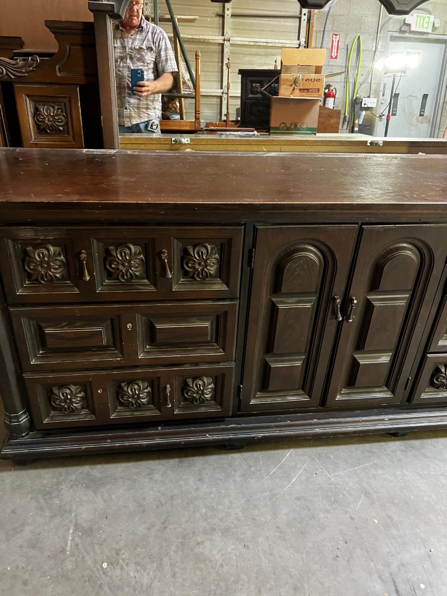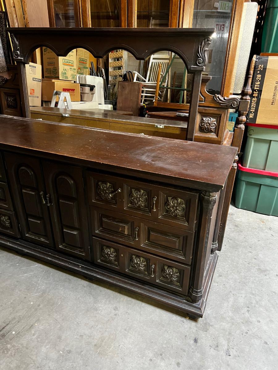 USED - Functional, El Greco Style Very Dark Wood Measures: 76" Long X 19 X 32" No Shipping NOTE ** Must Bring 2 Strong Adults to move this item. It is ground Floor of warehouse.-No Stairs but you will need a truck and this is very heavy!!!! We do not have Loading help for these furniture items!