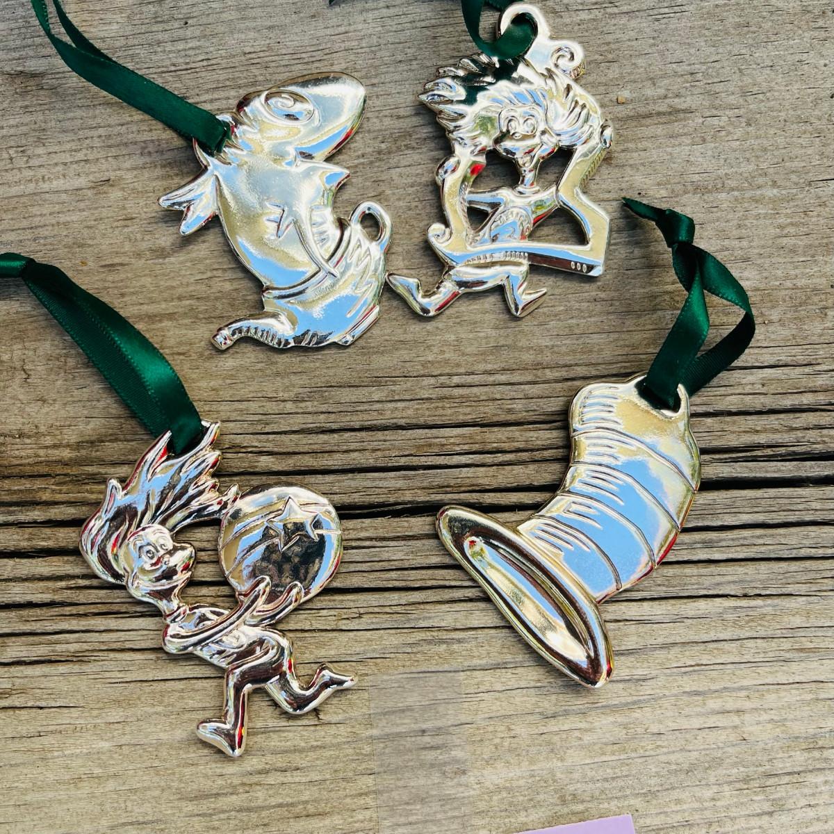 Dr. Seuss Cat in the Hat Silverplate Christmas Ornaments