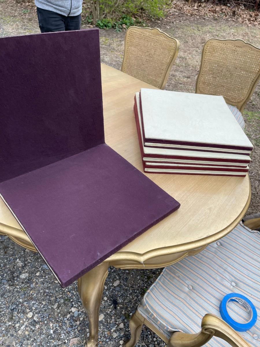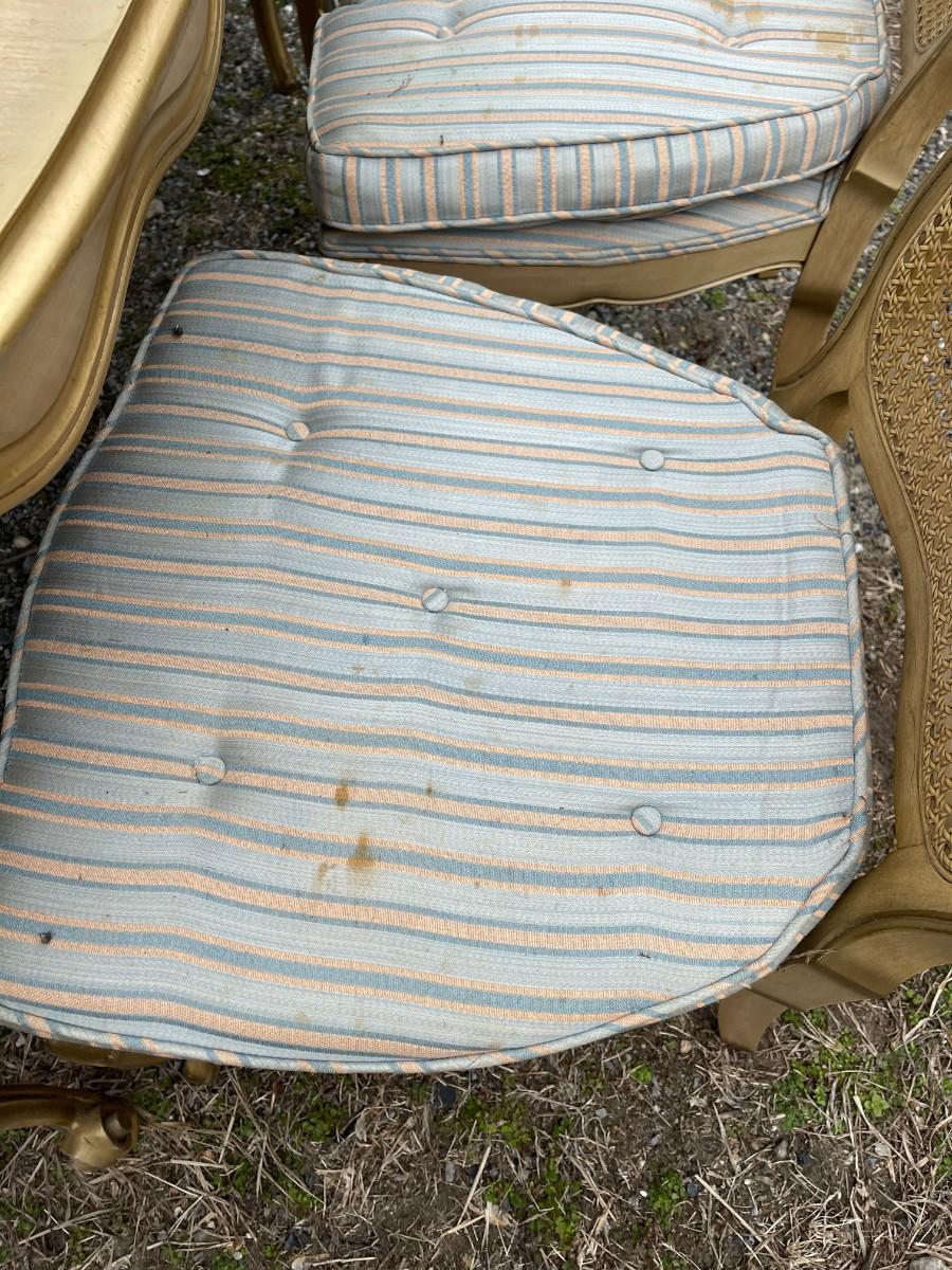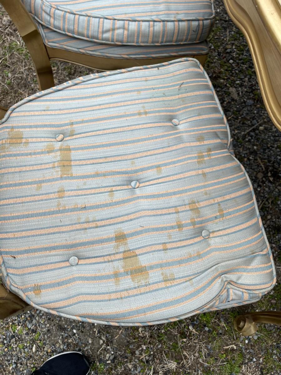 There are some stains on the chairs cushions otherwise all is in good standing., also included are the protective pads, pictured in photos !