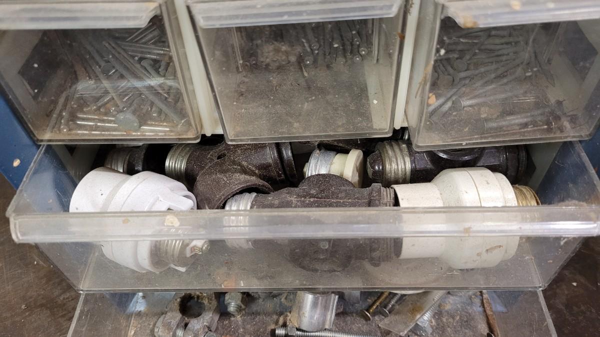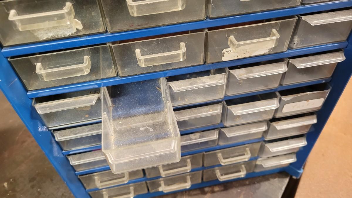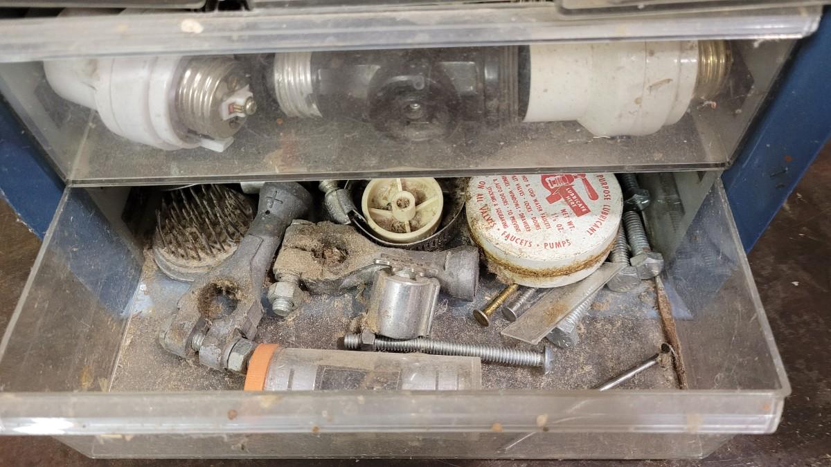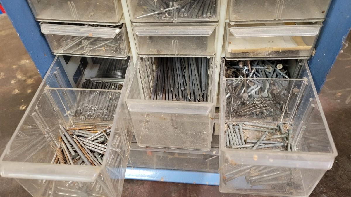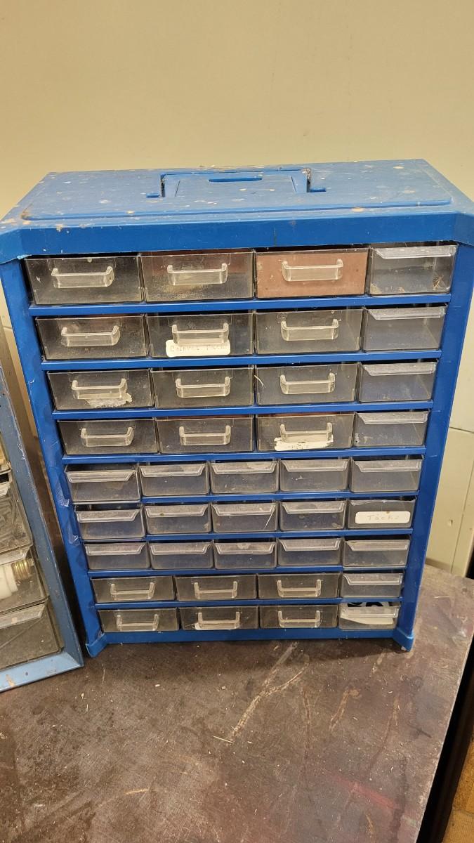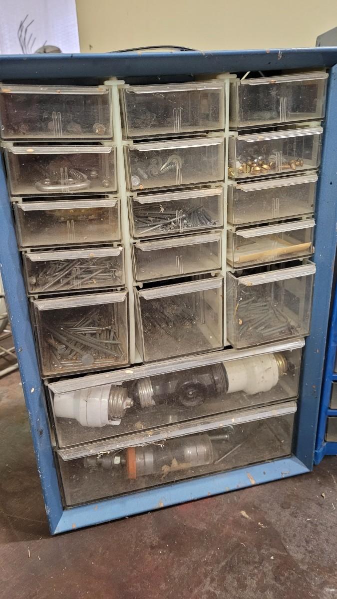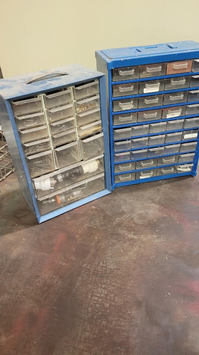 Lot 106: (2) Organizer Towers (1 filled with hardware, 1 empty)