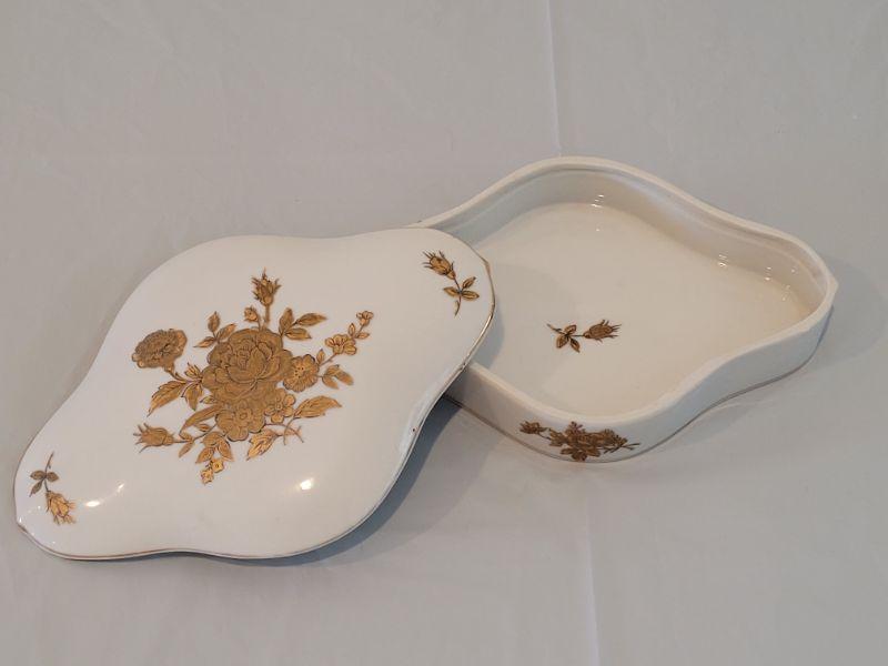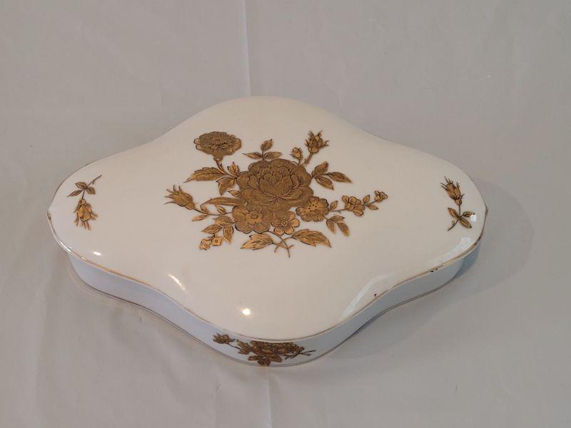 Lot 111: Vintage Trinket Porcelain Box with Gold Leaf Design (no chips or cracks)