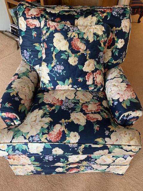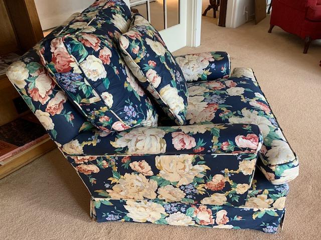 LOT 113 Floral Upholstered Arm Chair with Pillow