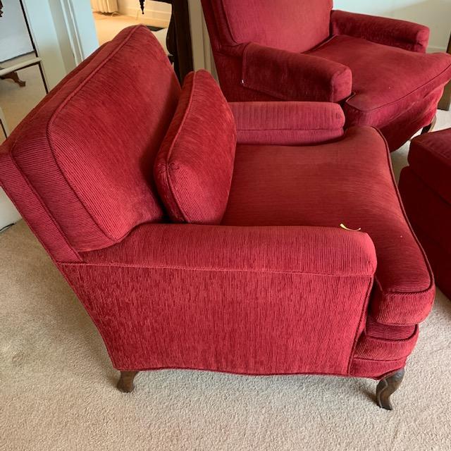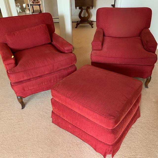 LOT 114 Pair of Red Arm Chairs 2 and Ottoman