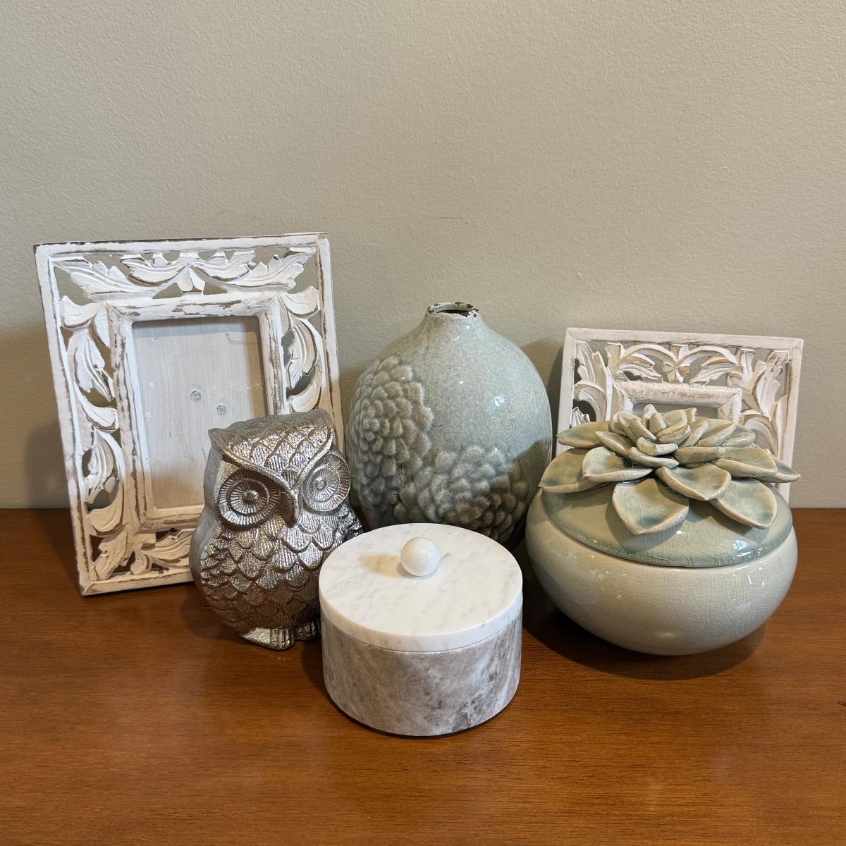 LOT 46L: Pale Green/Blue Home Decor Collection: Succulent Ceramics, Photo Frames & More