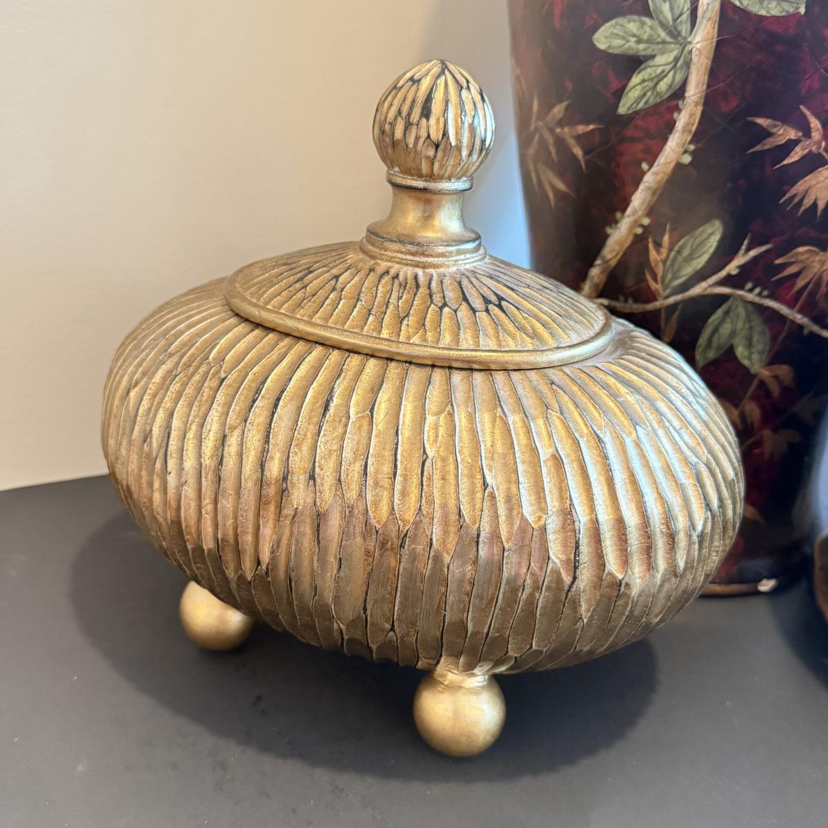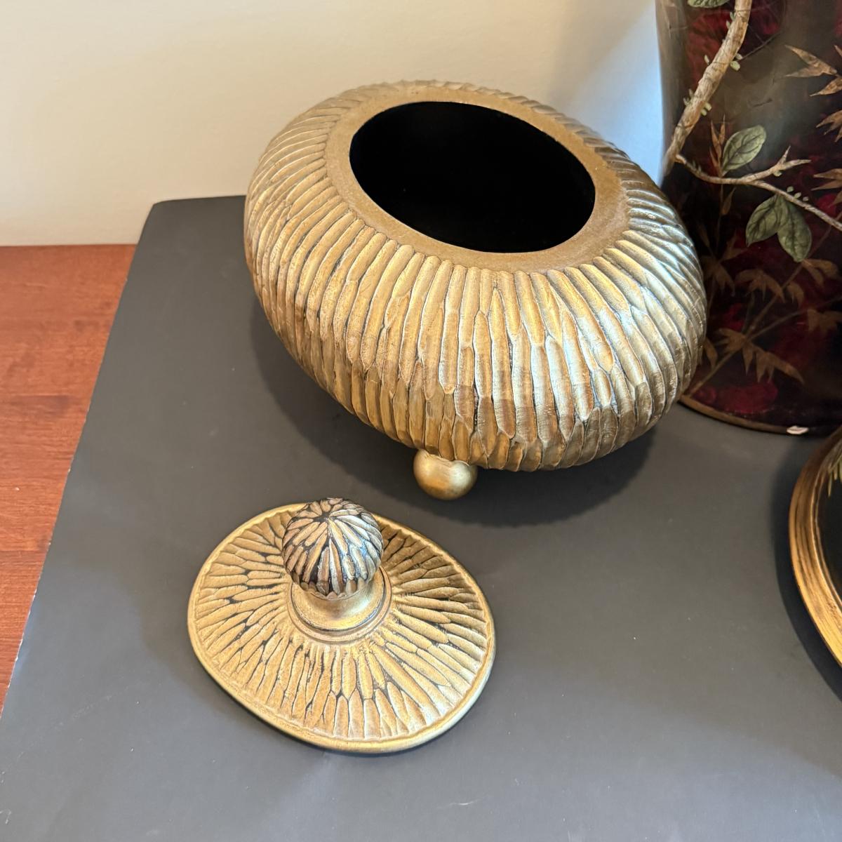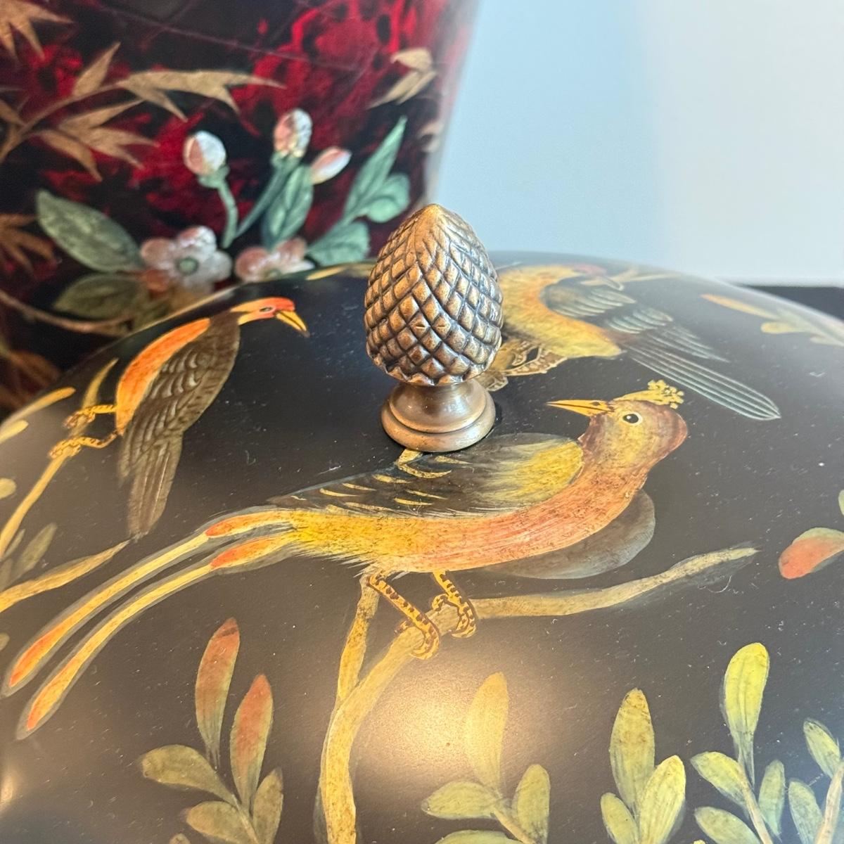 LOT 49D: Tall Bird Motif Vase and 2 Lidded Decor Vessels