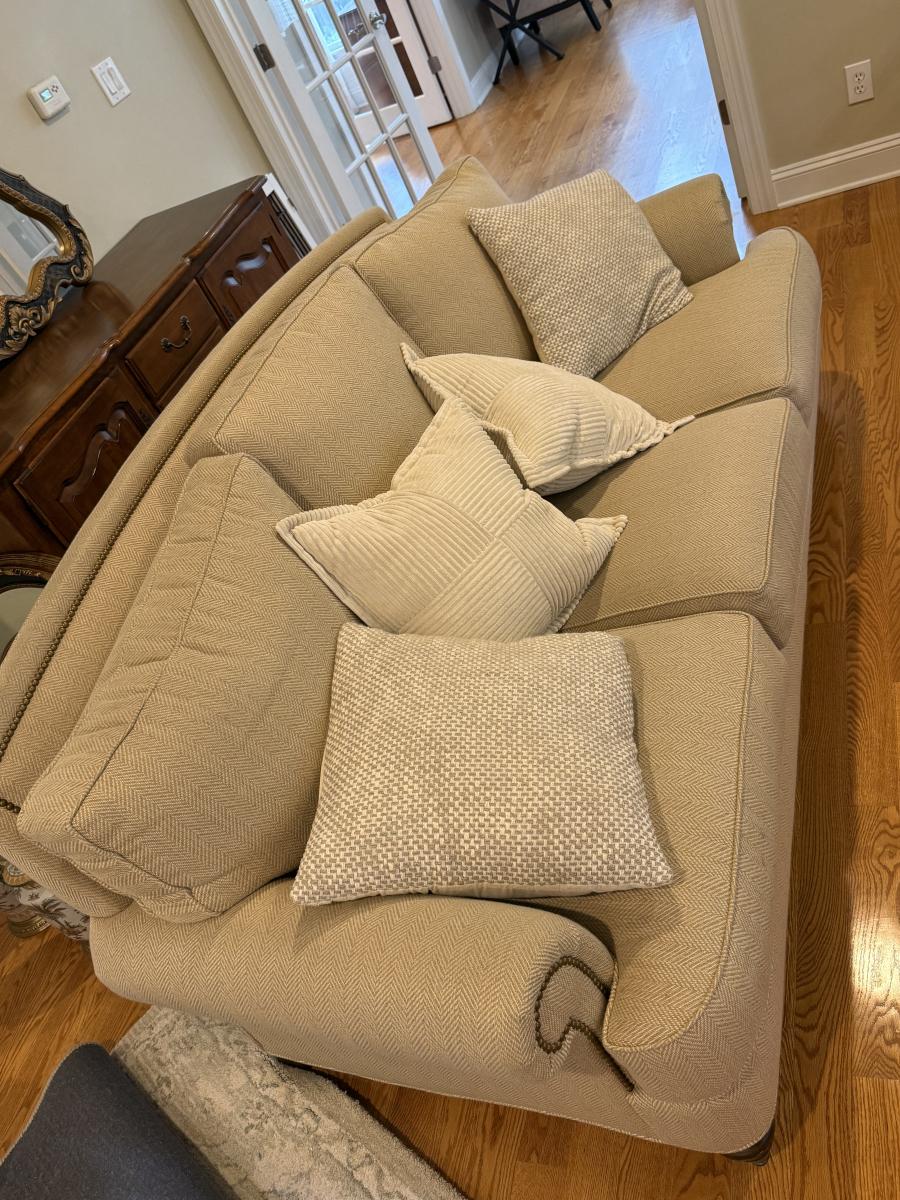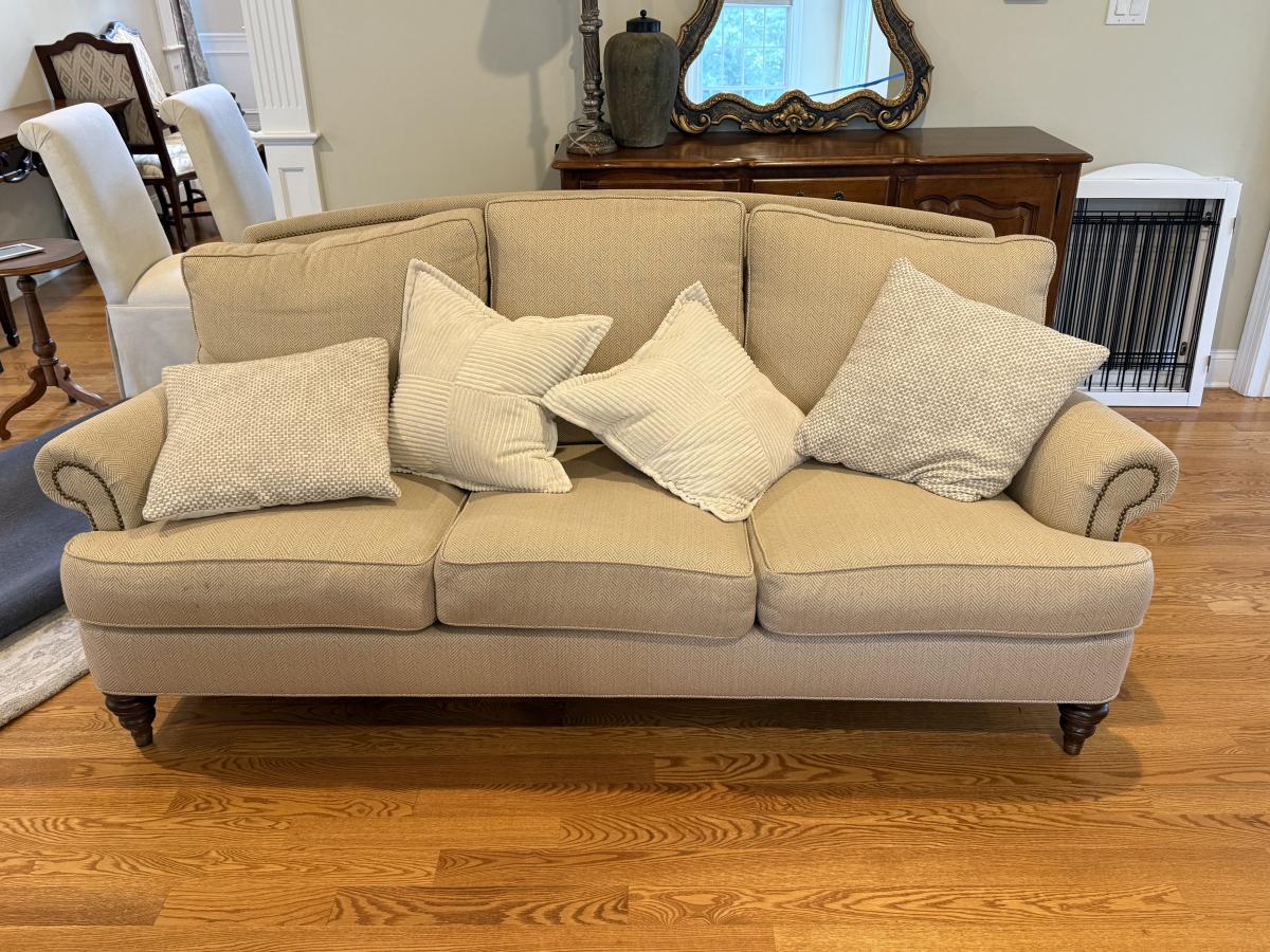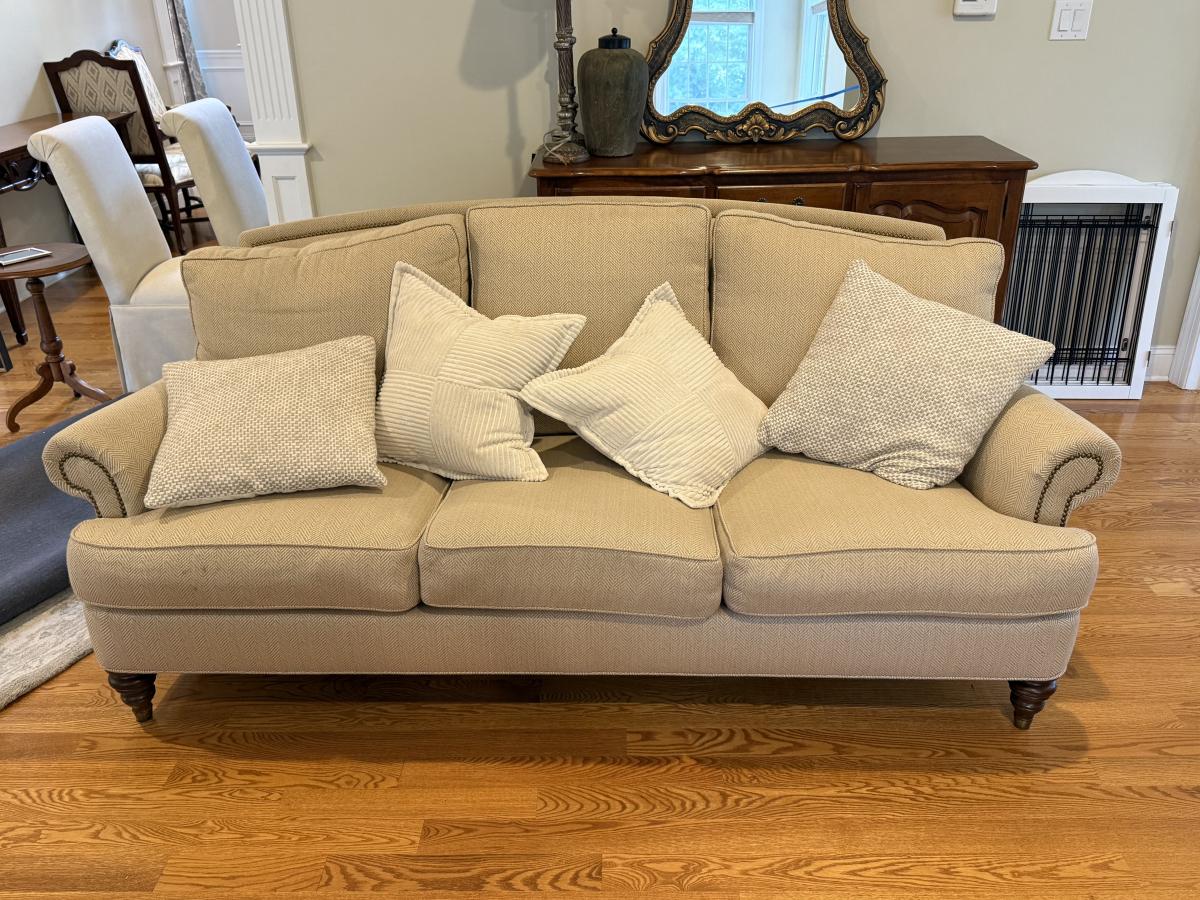 LOT 58L: Cream Sofa w/ Throw Pillows