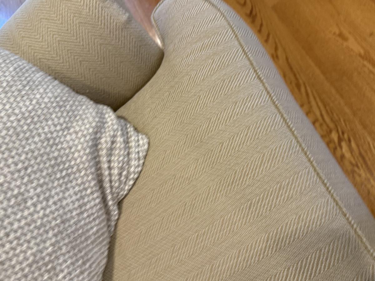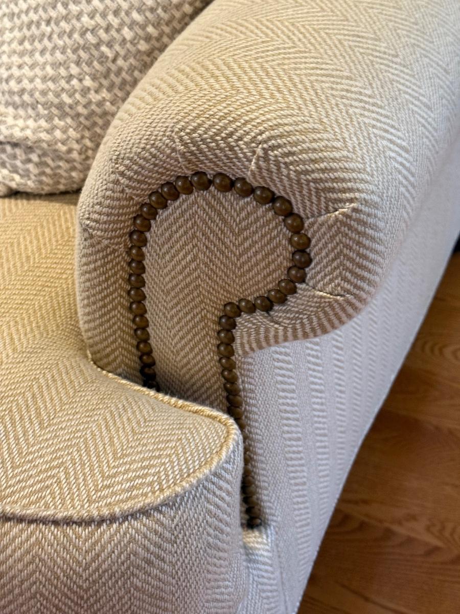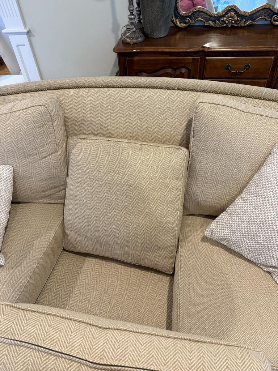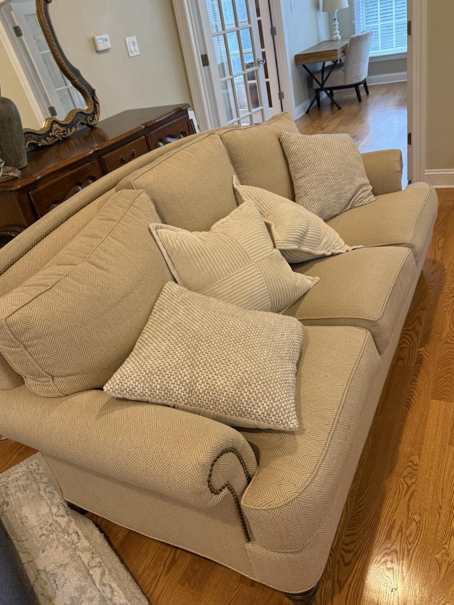 LOT 58L: Cream Sofa w/ Throw Pillows