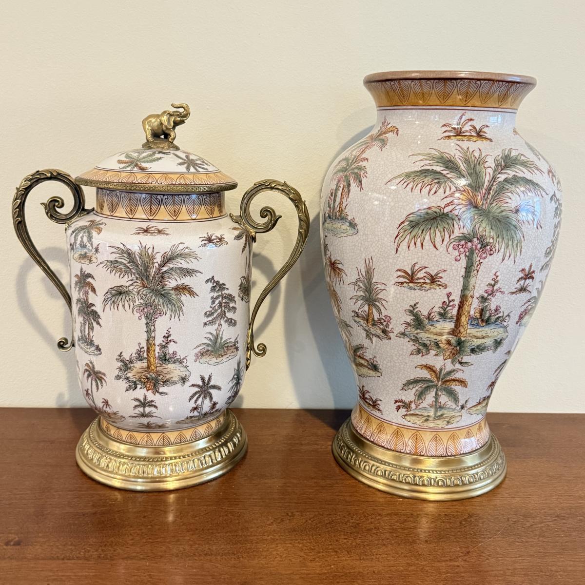 LOT 64D: Matching Palm Tree Motif Vase Jar