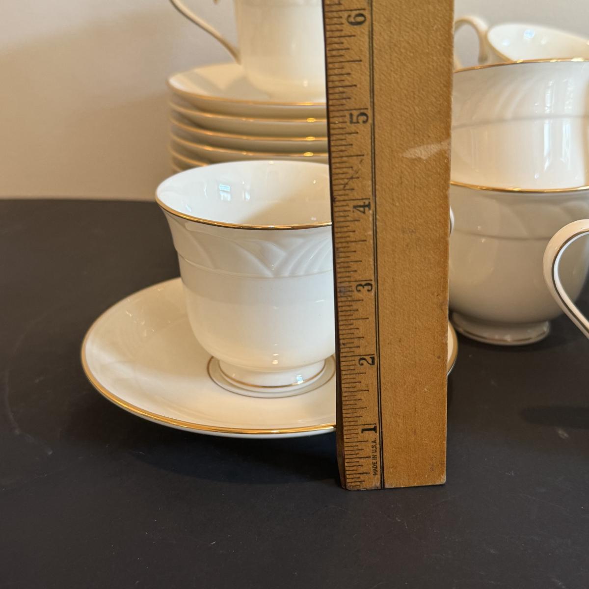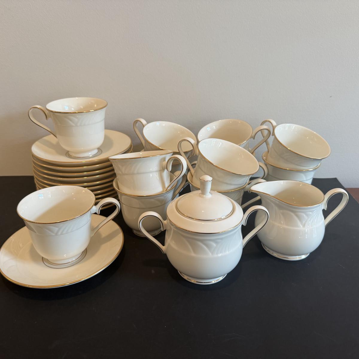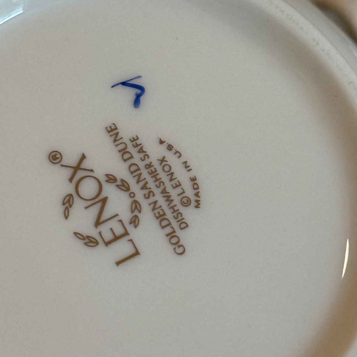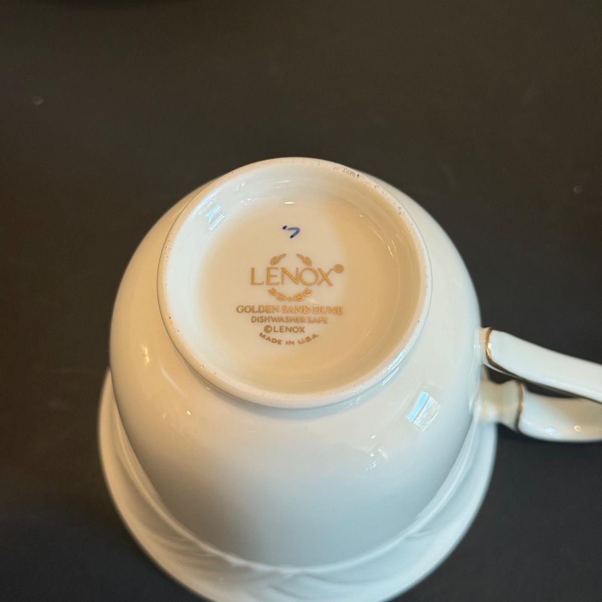 LOT 74D: Lenox Golden Sand Dune Tea Cups, Saucers & Serving Dishes