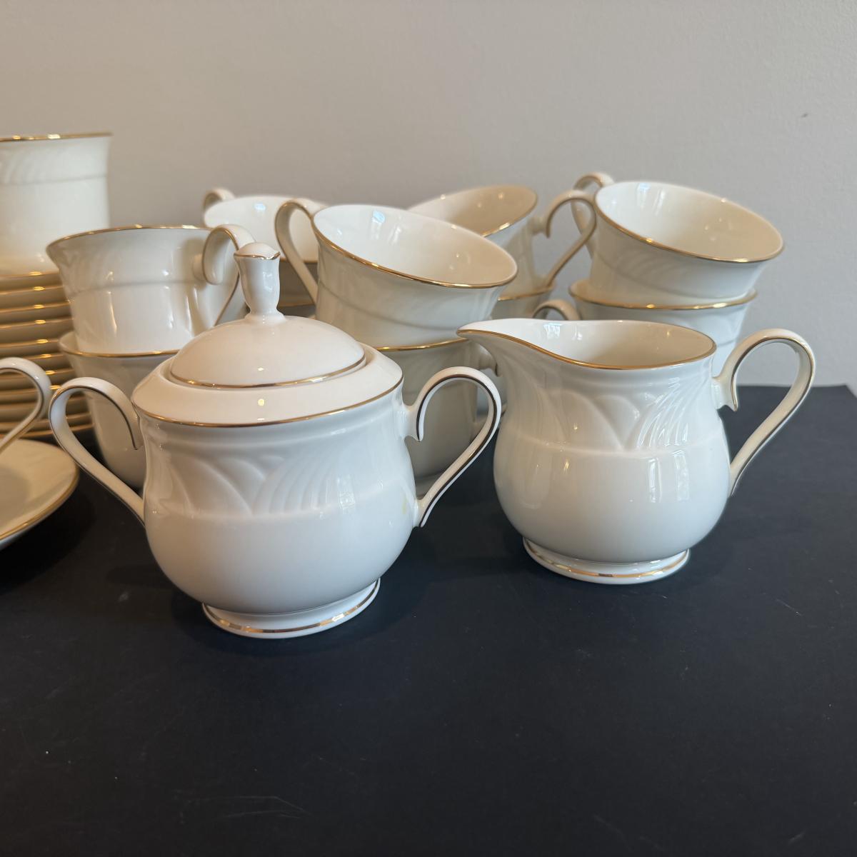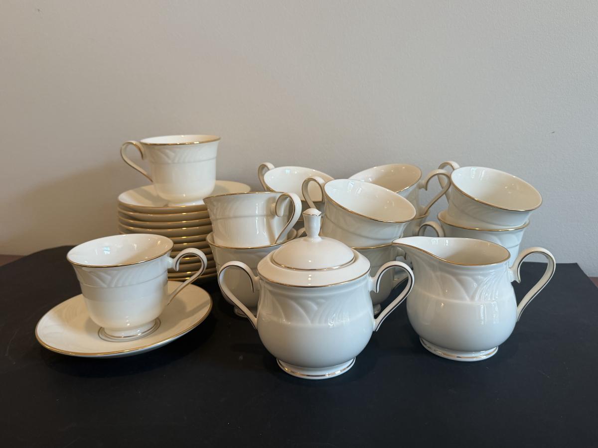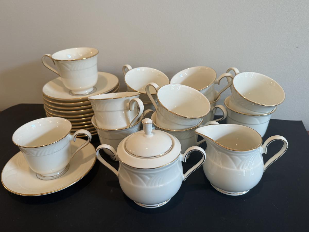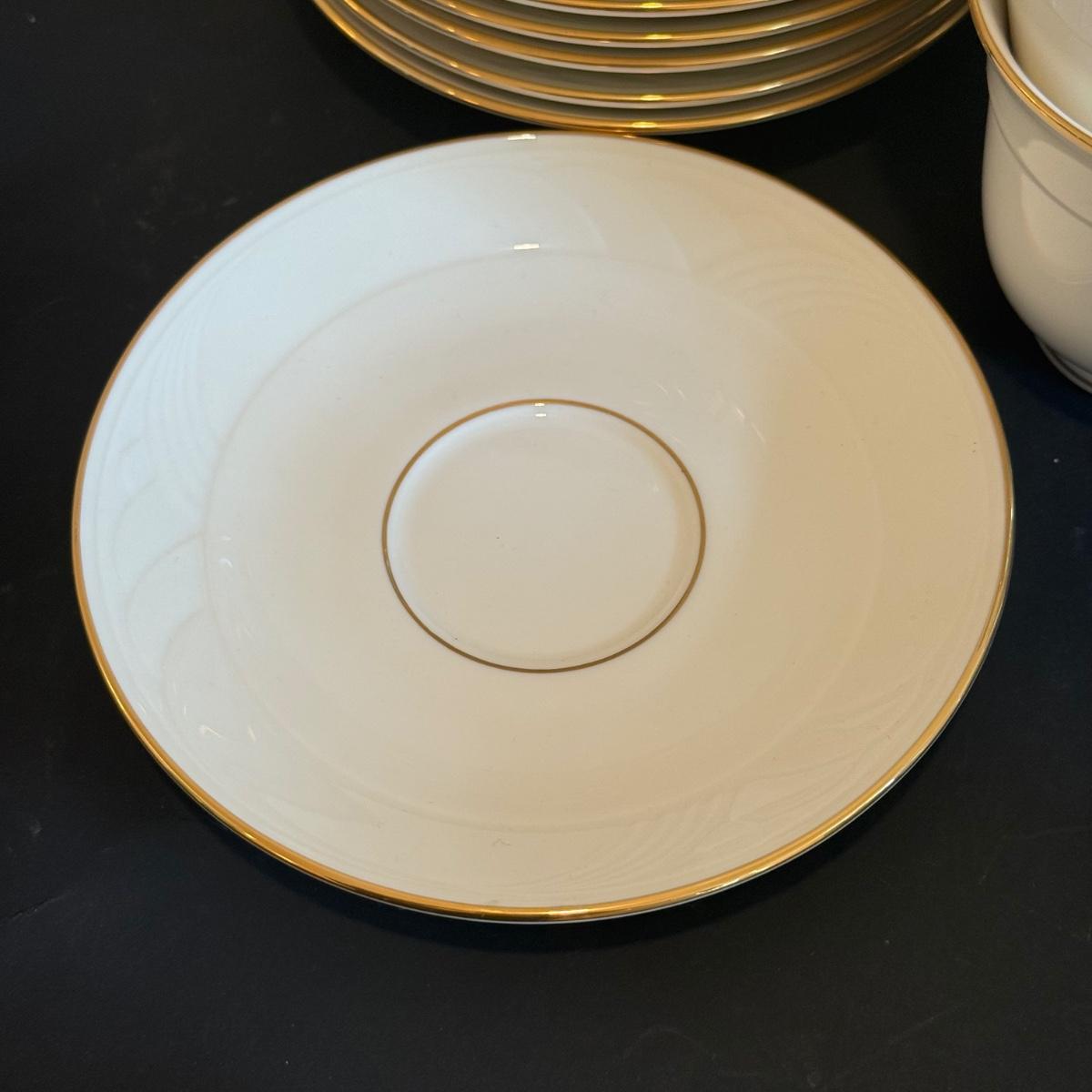 LOT 74D: Lenox Golden Sand Dune Tea Cups, Saucers & Serving Dishes