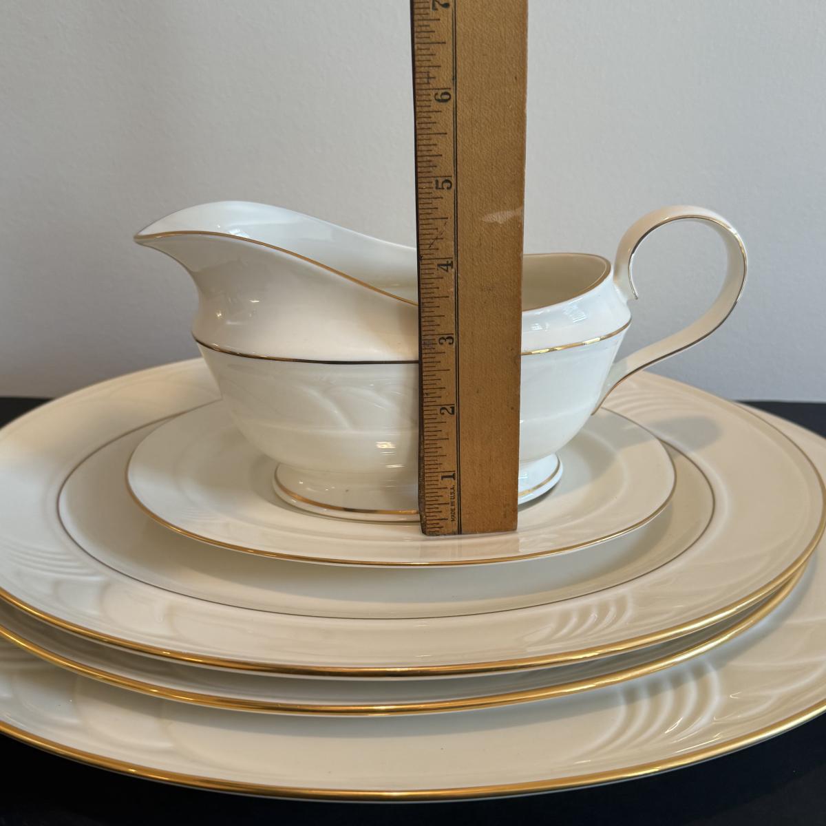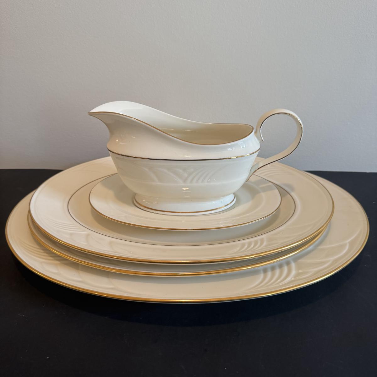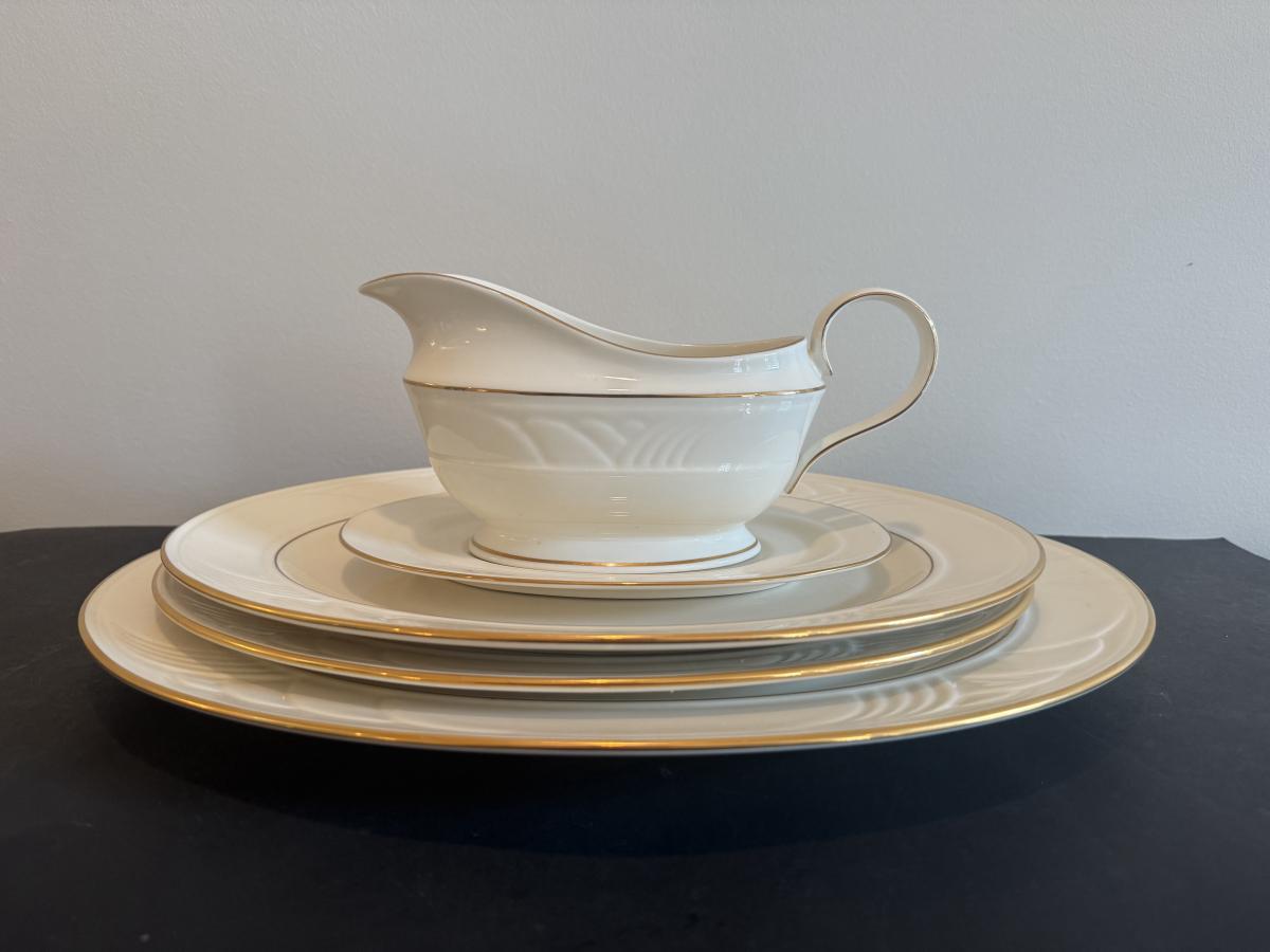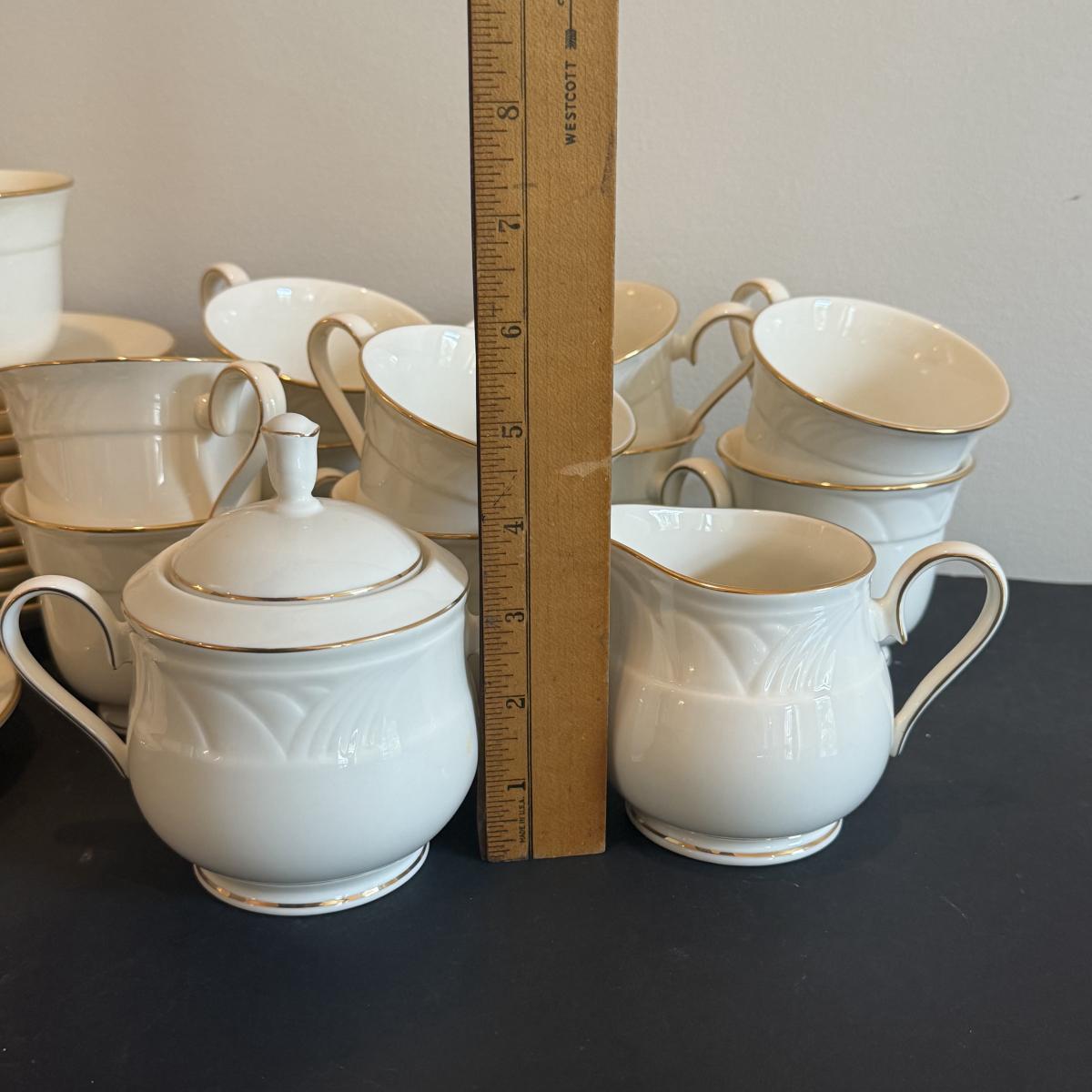 LOT 74D: Lenox Golden Sand Dune Tea Cups, Saucers & Serving Dishes