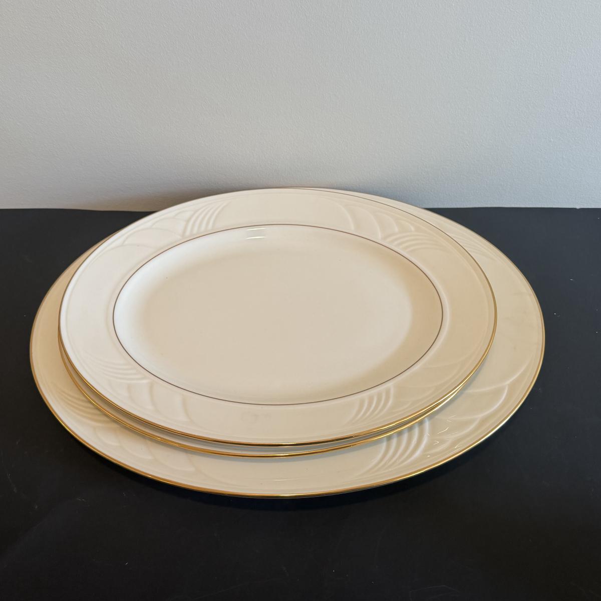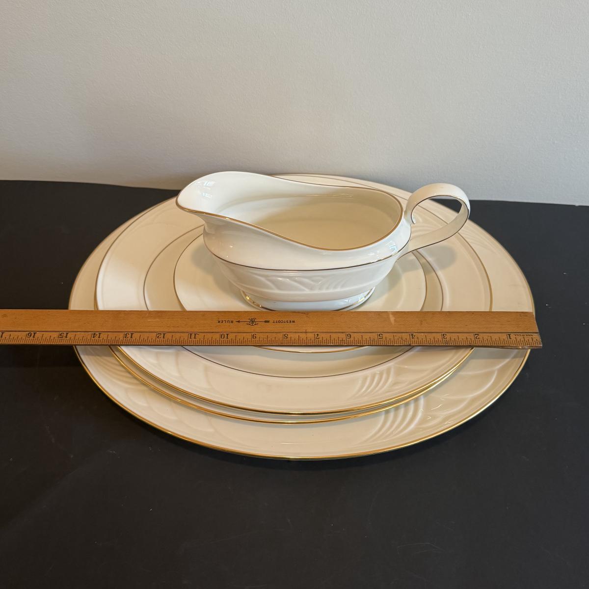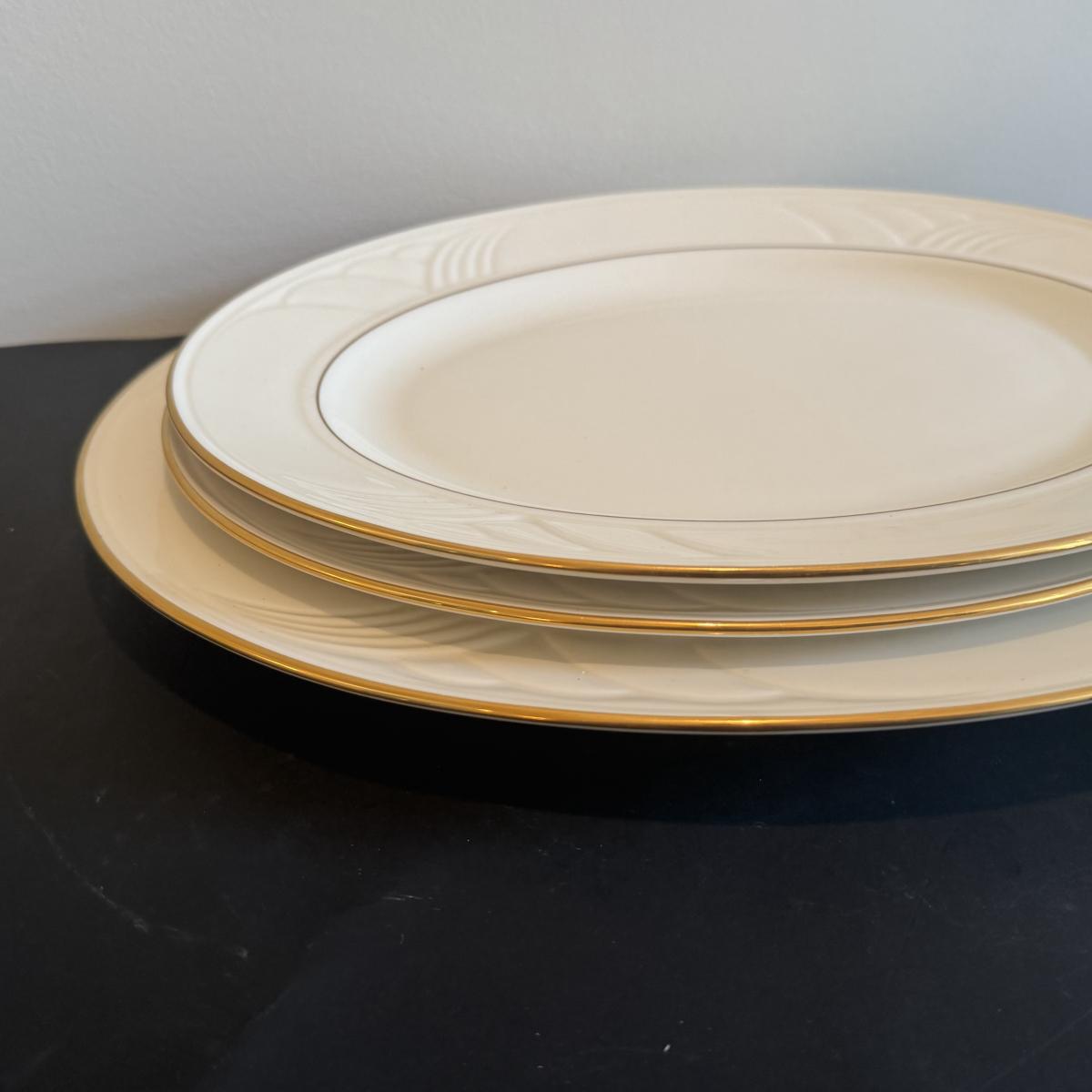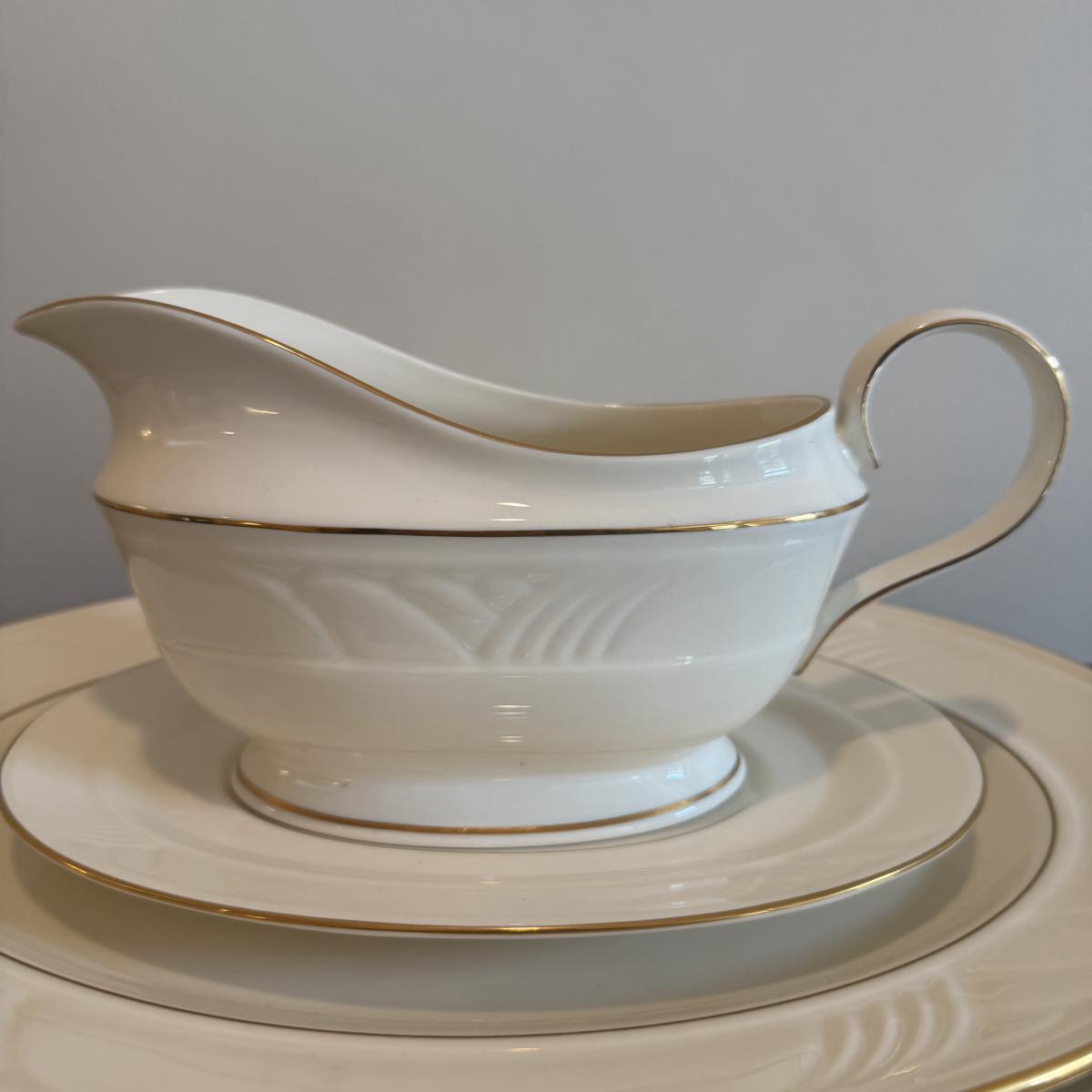 LOT 74D: Lenox Golden Sand Dune Tea Cups, Saucers & Serving Dishes