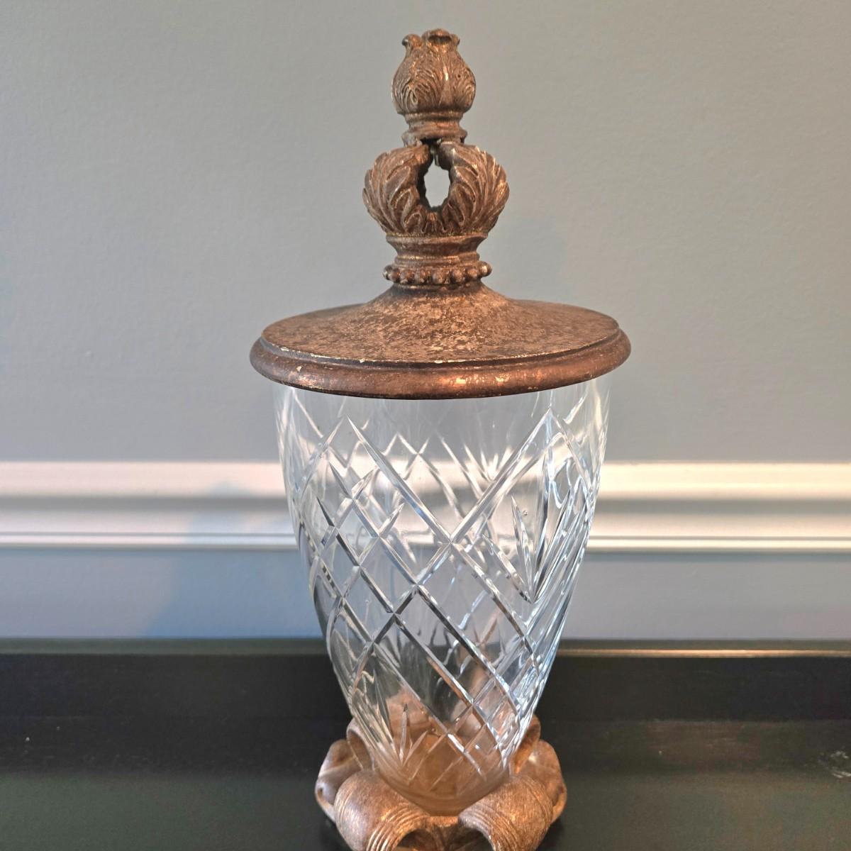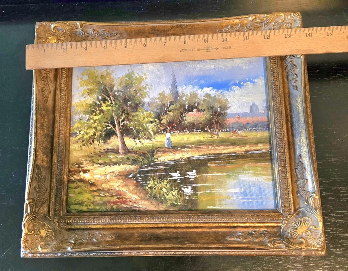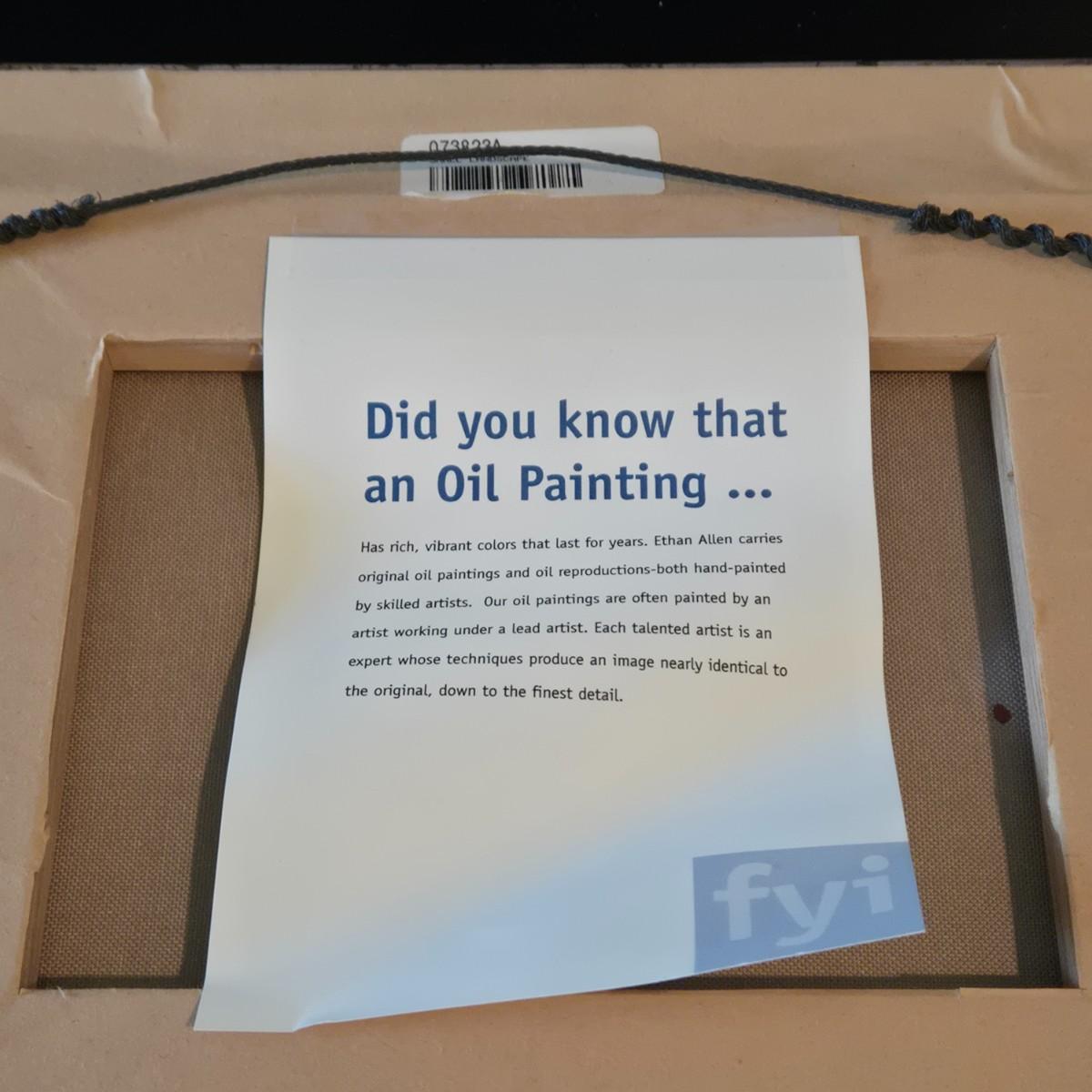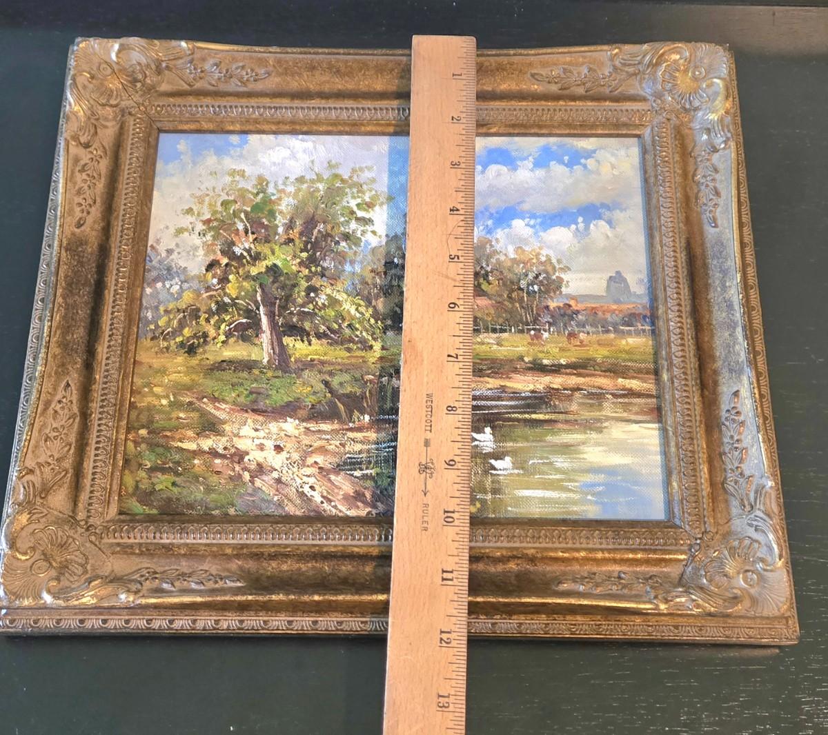 LOT 106Z: Two Oil Painting Lanscapes and Glass Pedestal Jar with Lid