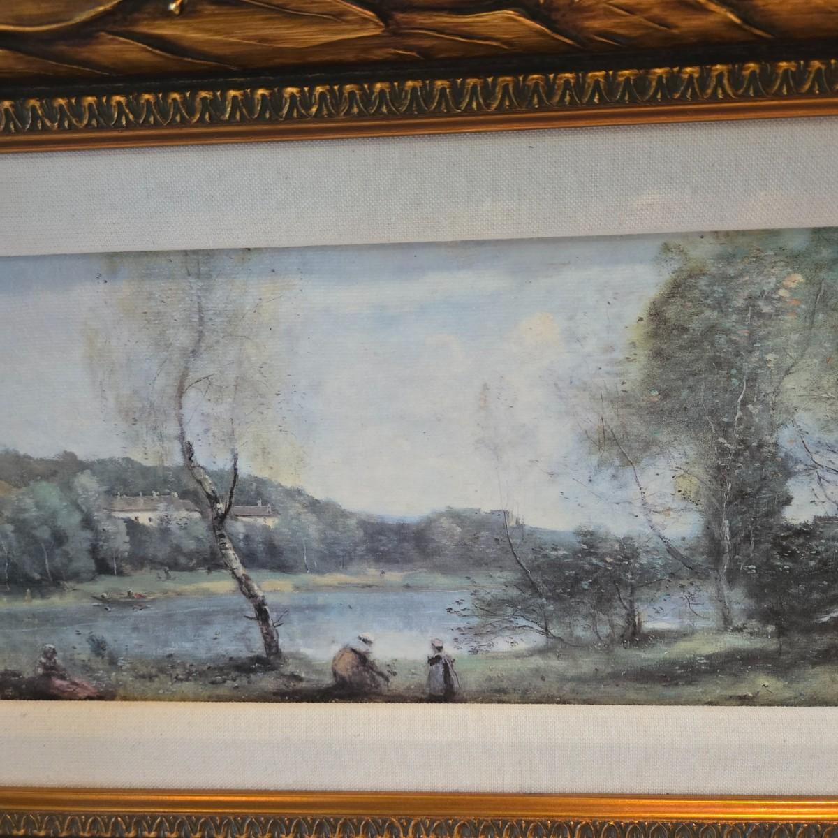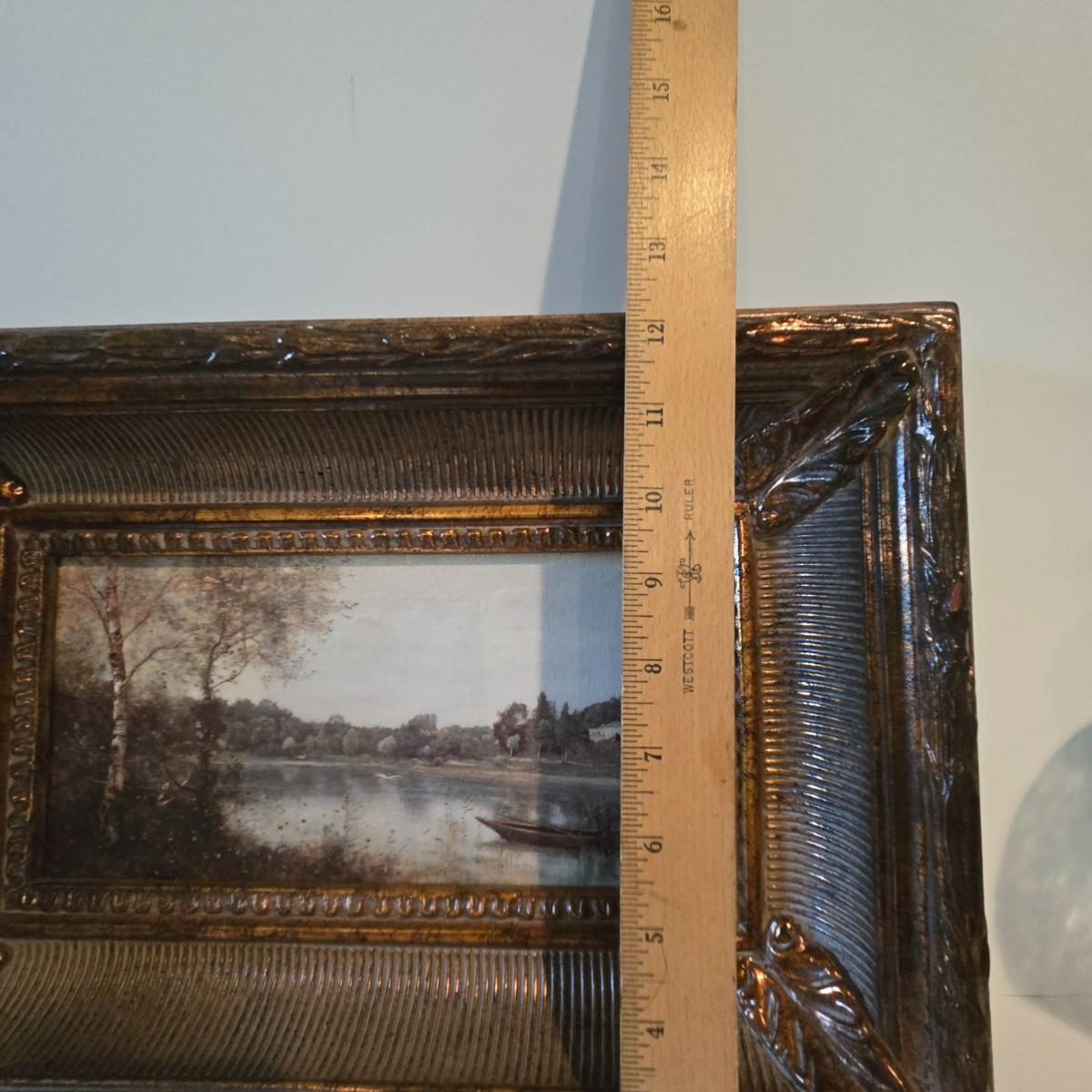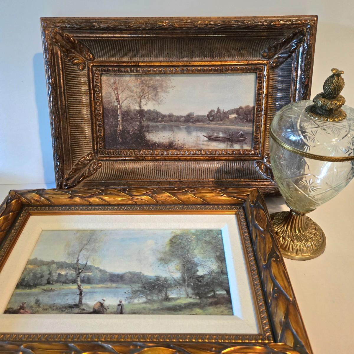 LOT 114H: Two Landscape Oil Paintings in Ornate Gold-tone Frames and Baccarat Style Lidded Jar