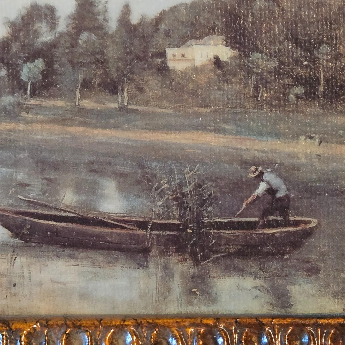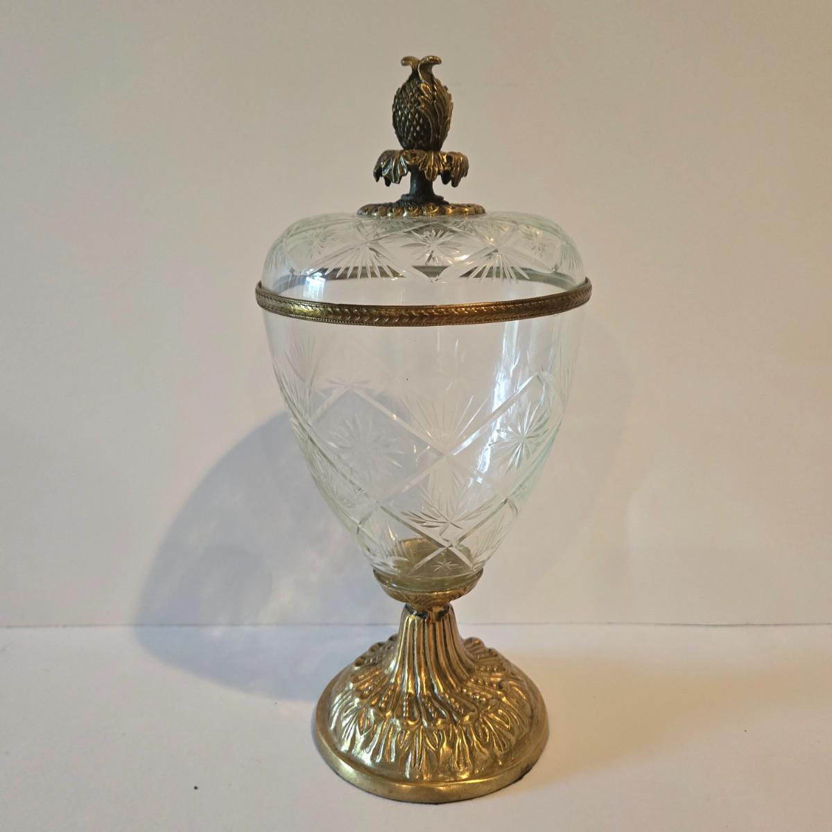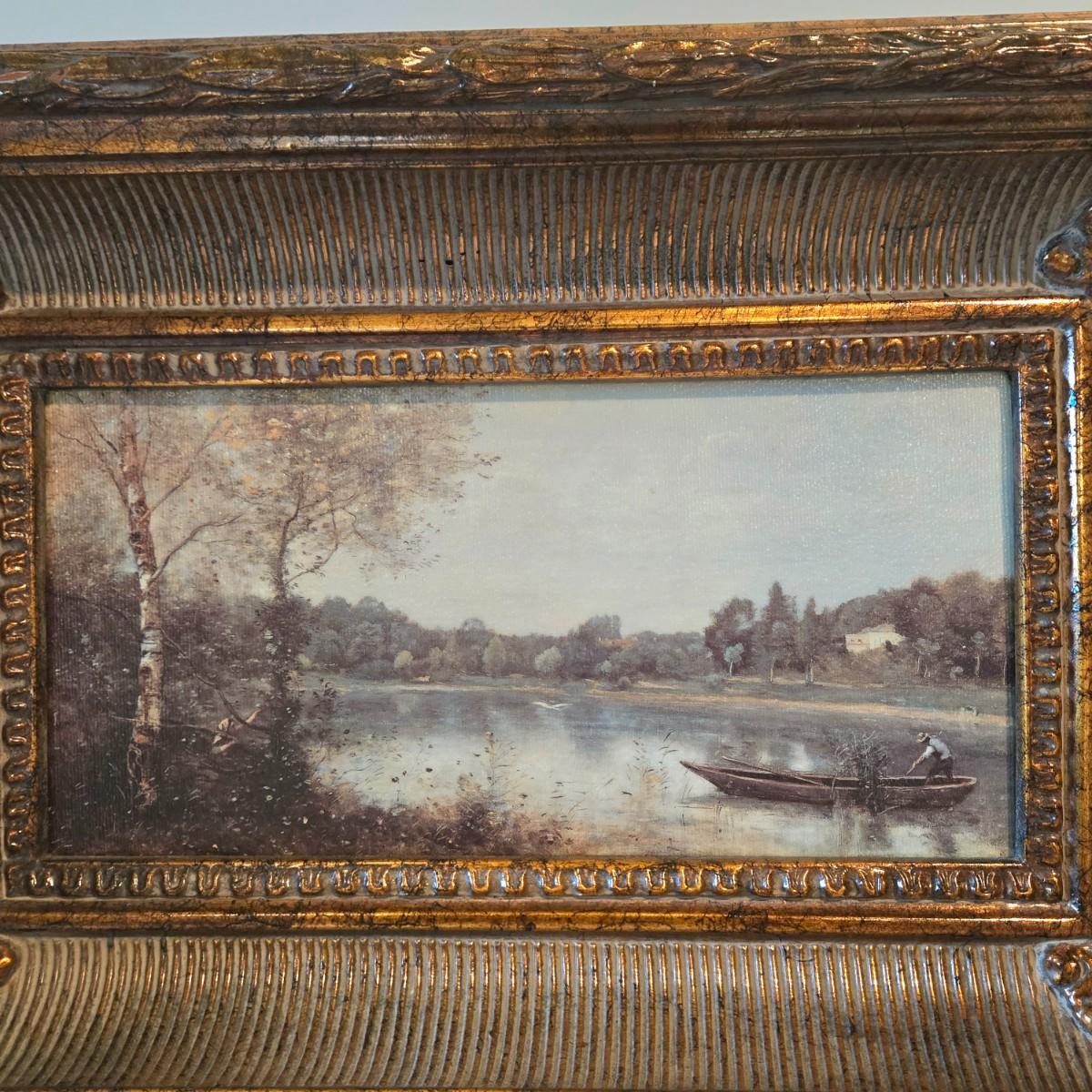 LOT 114H: Two Landscape Oil Paintings in Ornate Gold-tone Frames and Baccarat Style Lidded Jar