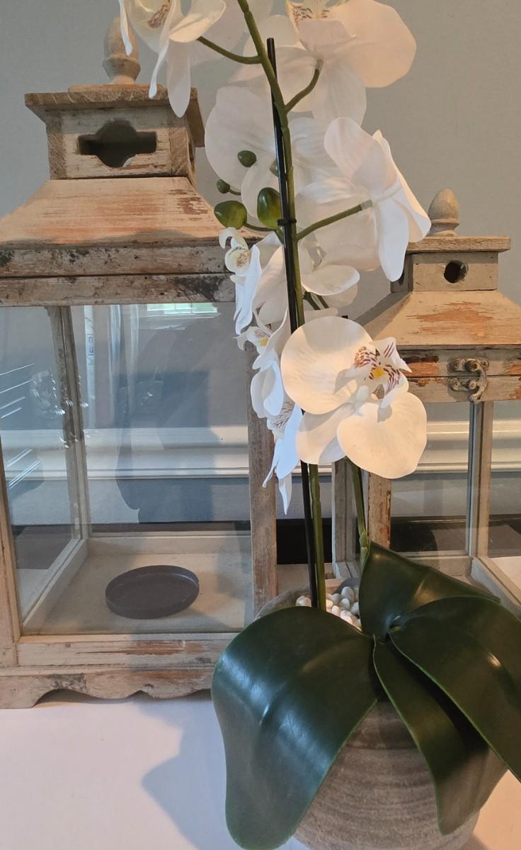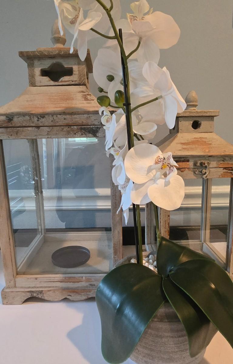 LOT 115H: Two Decorative Lanterns and Faux Orchid