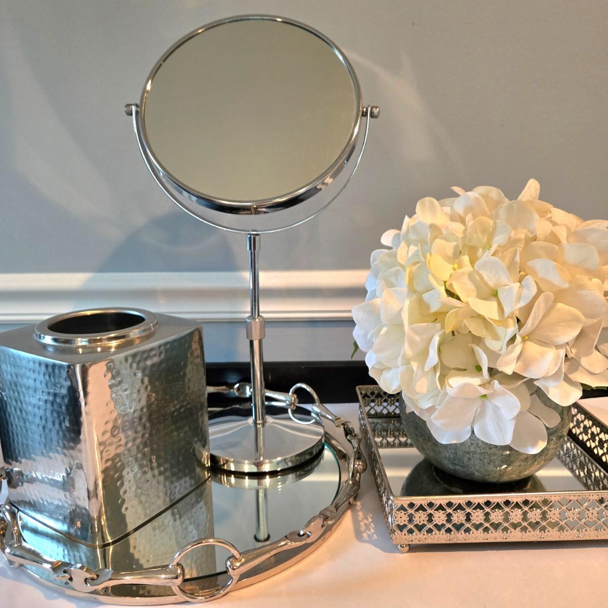 LOT 116H: Vanity Set Including Makeup Mirror, Two Mirror Trays, and More
