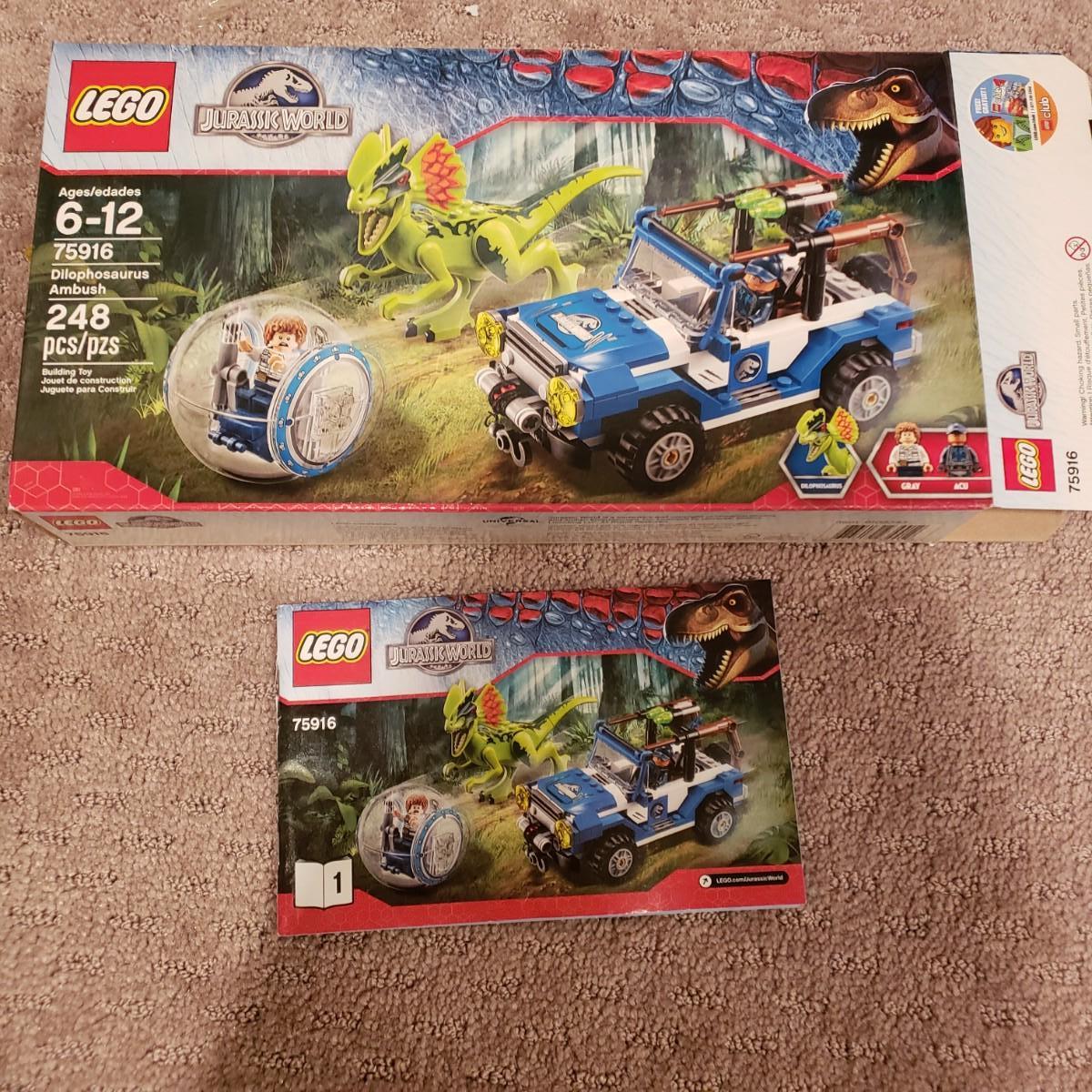 LOT 129B: Lego Jurassic World Sets-Raptor Rampage, Dilophosaurus Ambush, Pteranodon Capture, T Rex Tracker, Indominus Rex Breakout