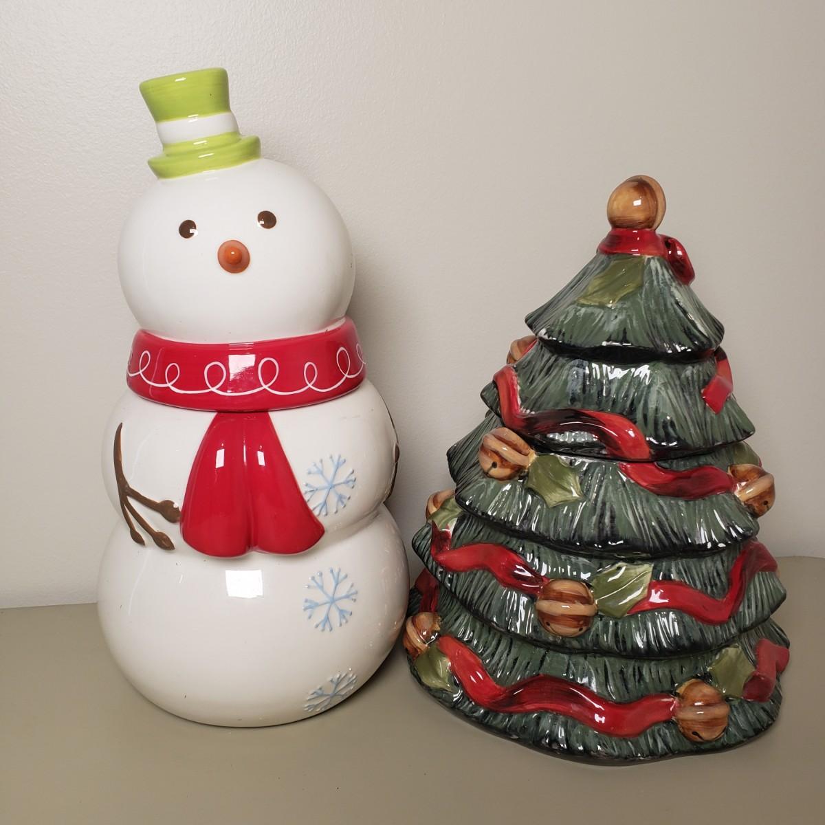 LOT 137B: Ceramic Cookie Jars-Snowman & Christmas Tree