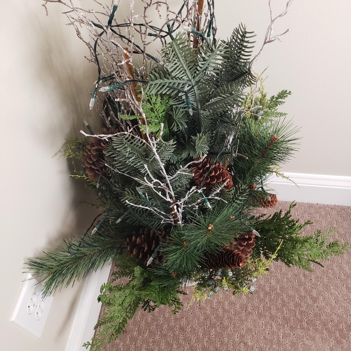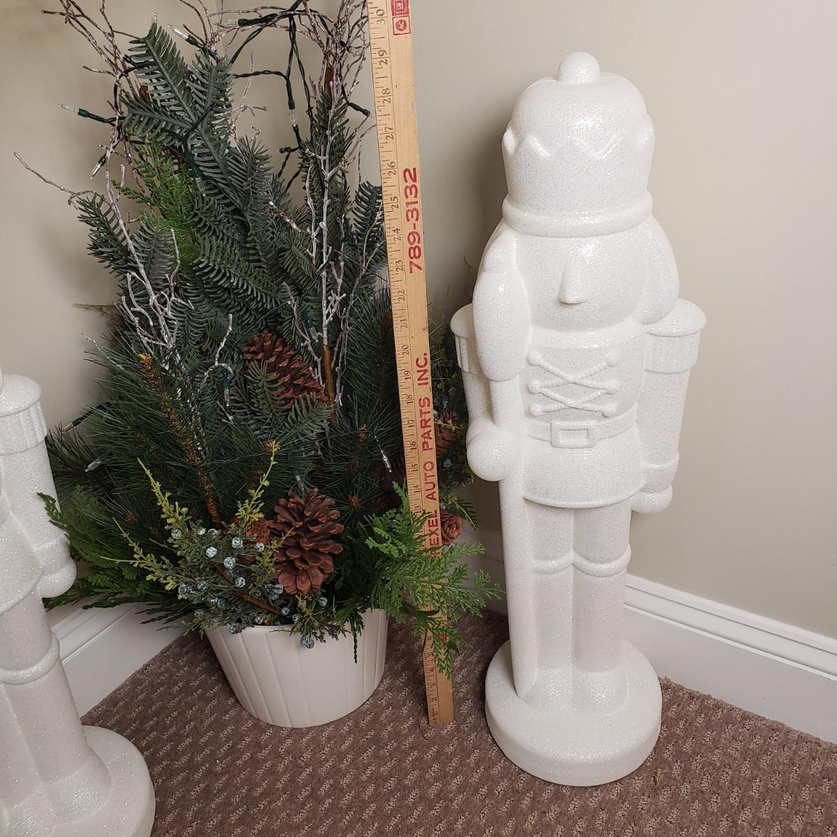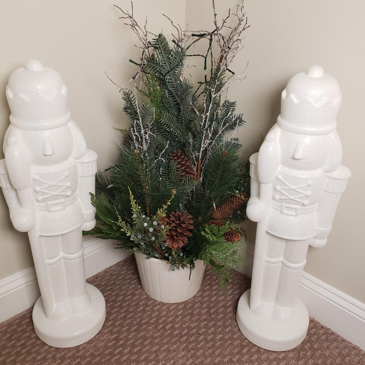 LOT 138B: Pair of Glitter Nutcrackers & Artificial Winter Topiary