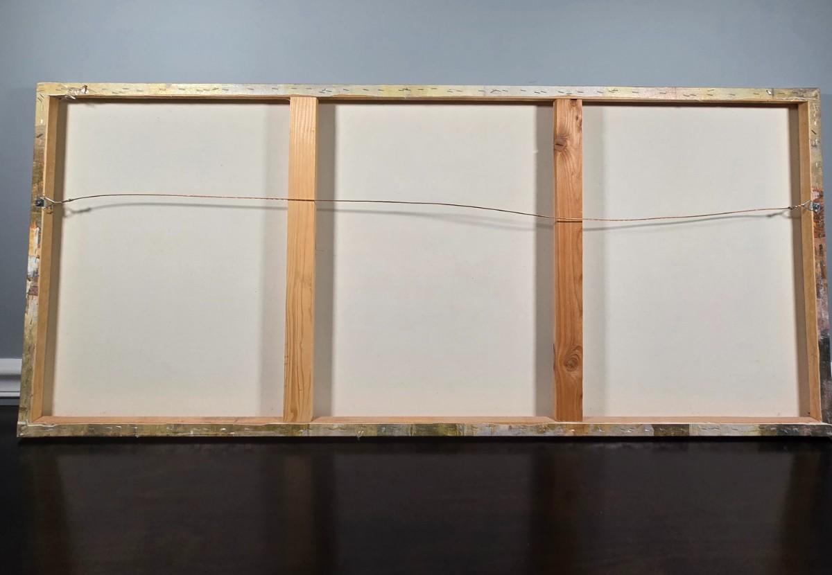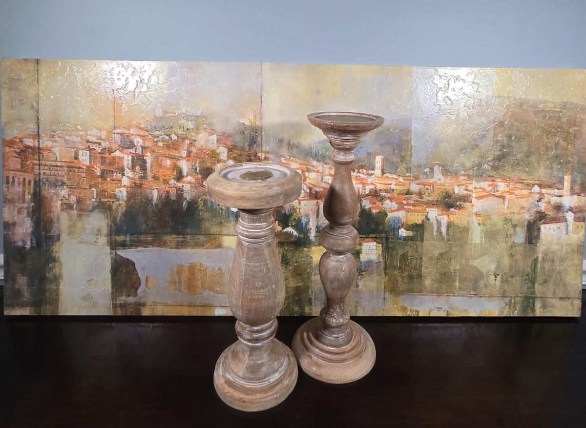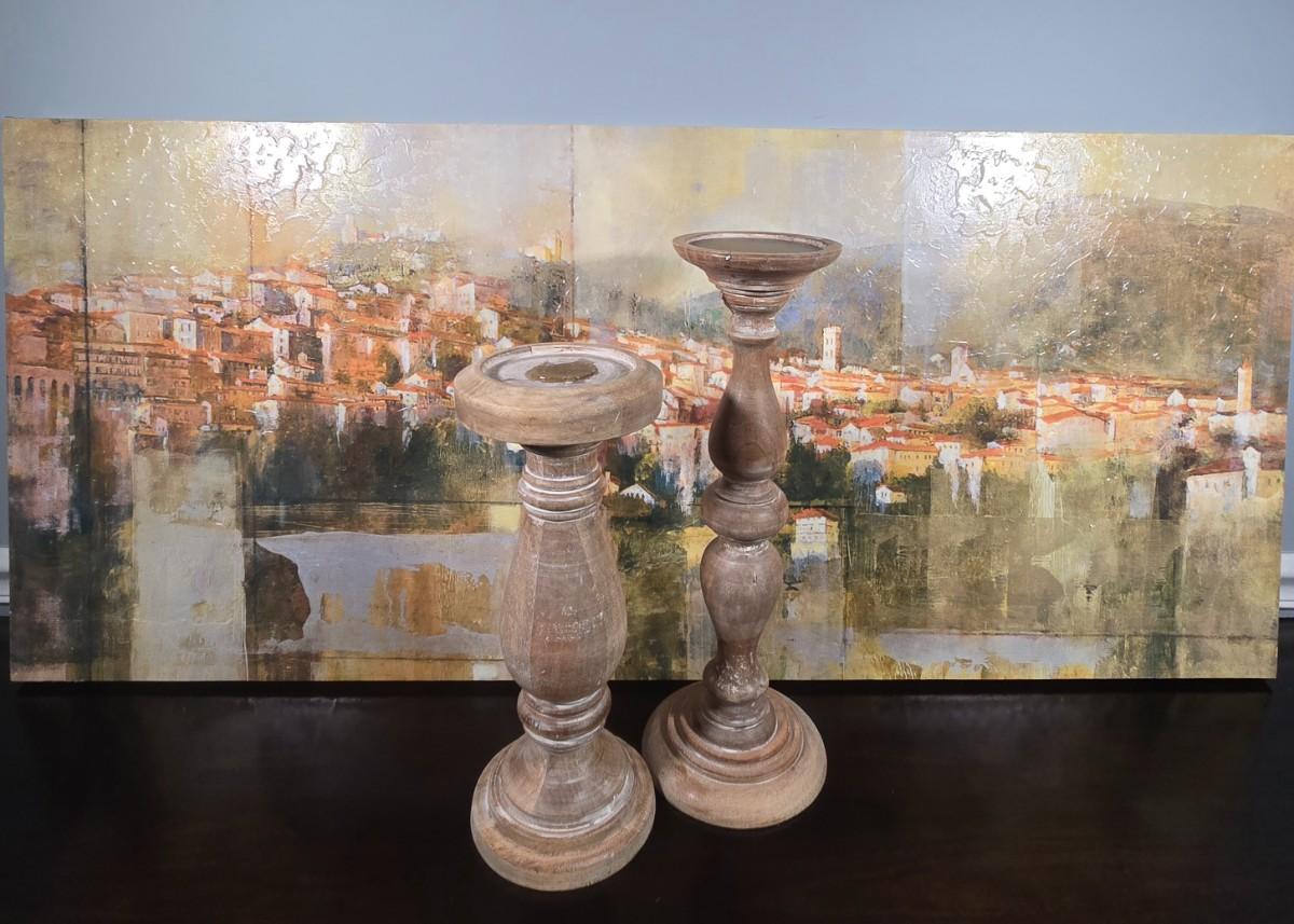 LOT 163Y: Stretched Canvas Painting of Tuscan Hillside and Two Wooden Candle Holders