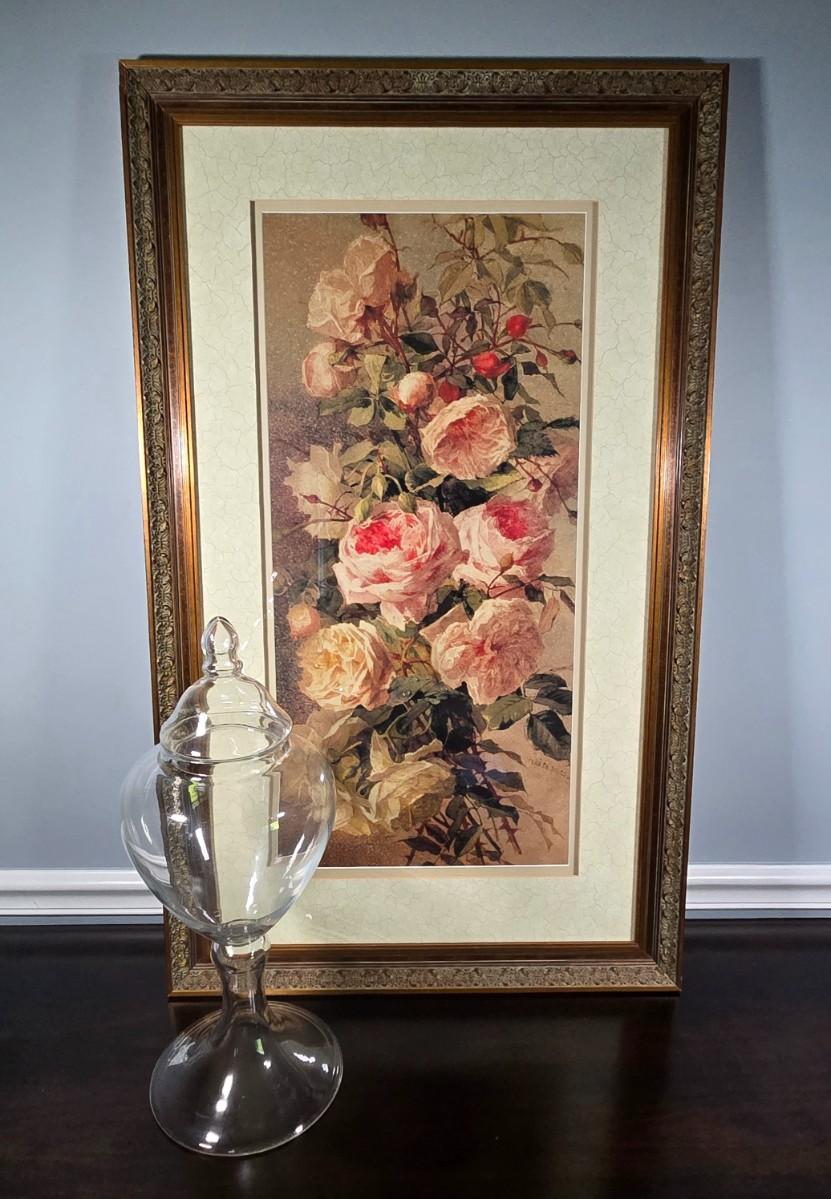 LOT 164Y: Large Framed Floral Print and Lidded Glass Apothecary Jar
