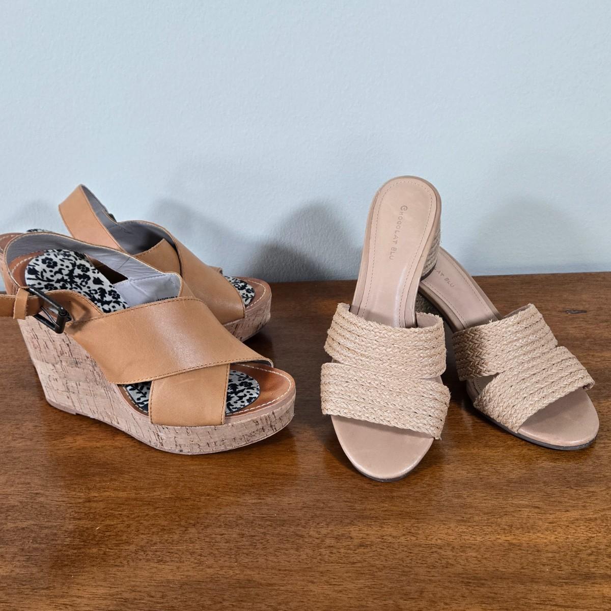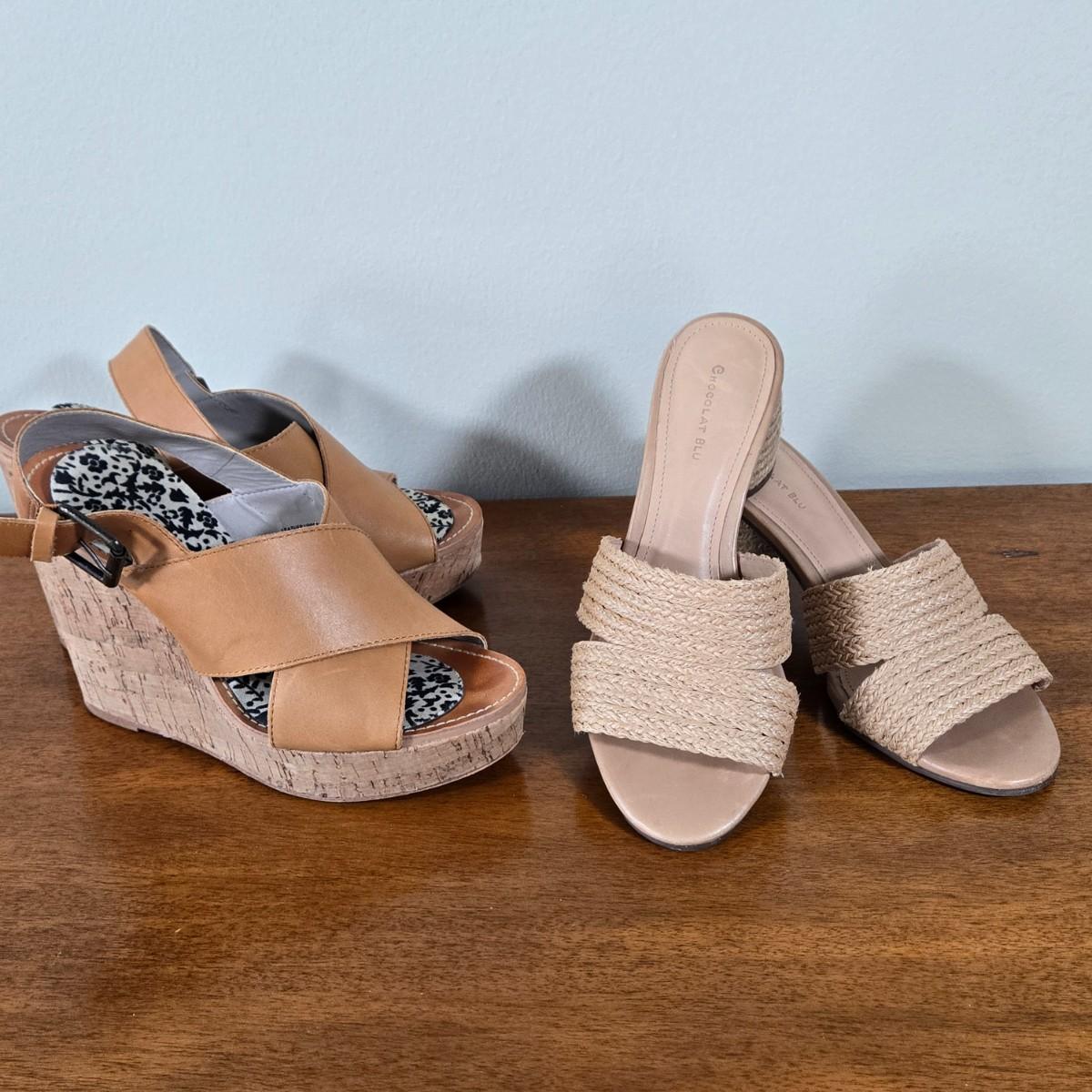 LOT 179W: Cork Wedge Sandals and Heeled Slip on Sandals