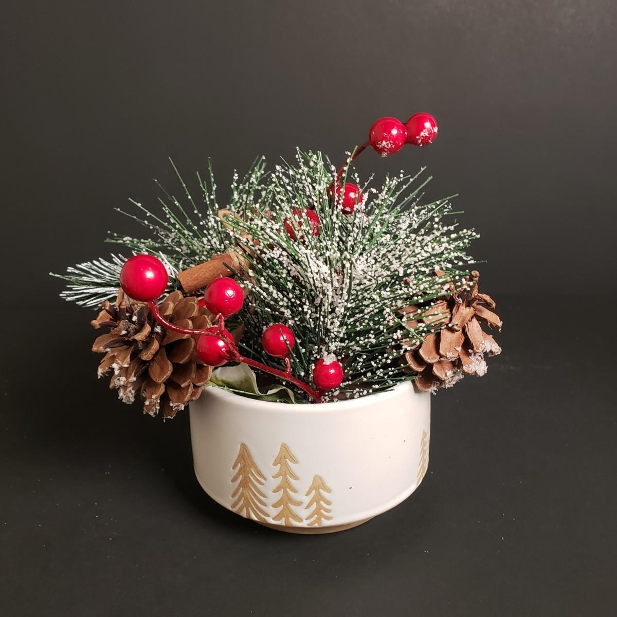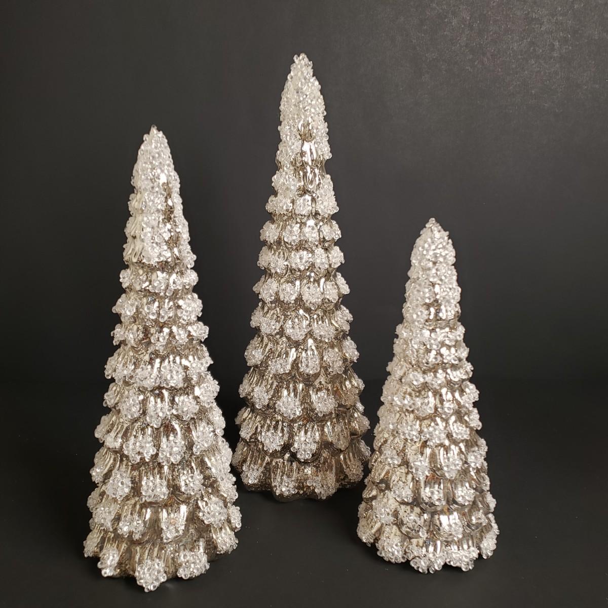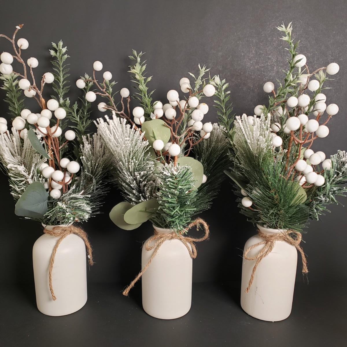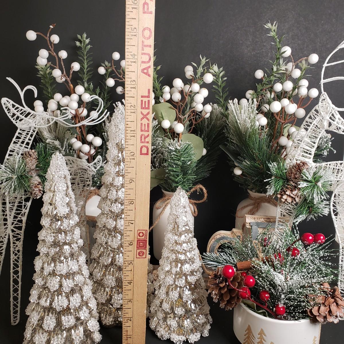 LOT 182B: Holiday/Winter Decor; Embossed Mercury Glass Trees, Artificial Floral Arrangements & More