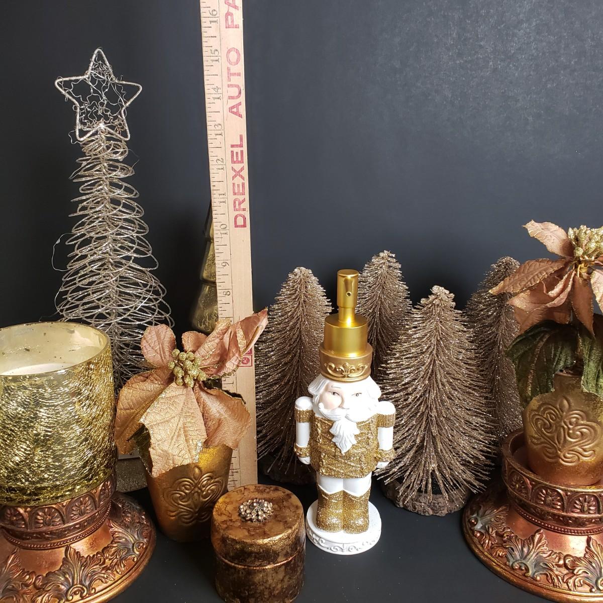 LOT 183B: Gilded Holiday Decor; Bottle Brush Trees, Lighted & Mercury Glass Style Trees, Decorative Candles & More