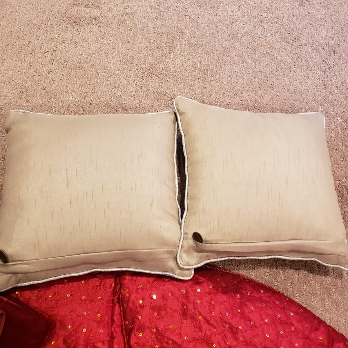 LOT 189B: Christmas Tree Skirt, Decorative Pillows & Stockings with 5 Hooks