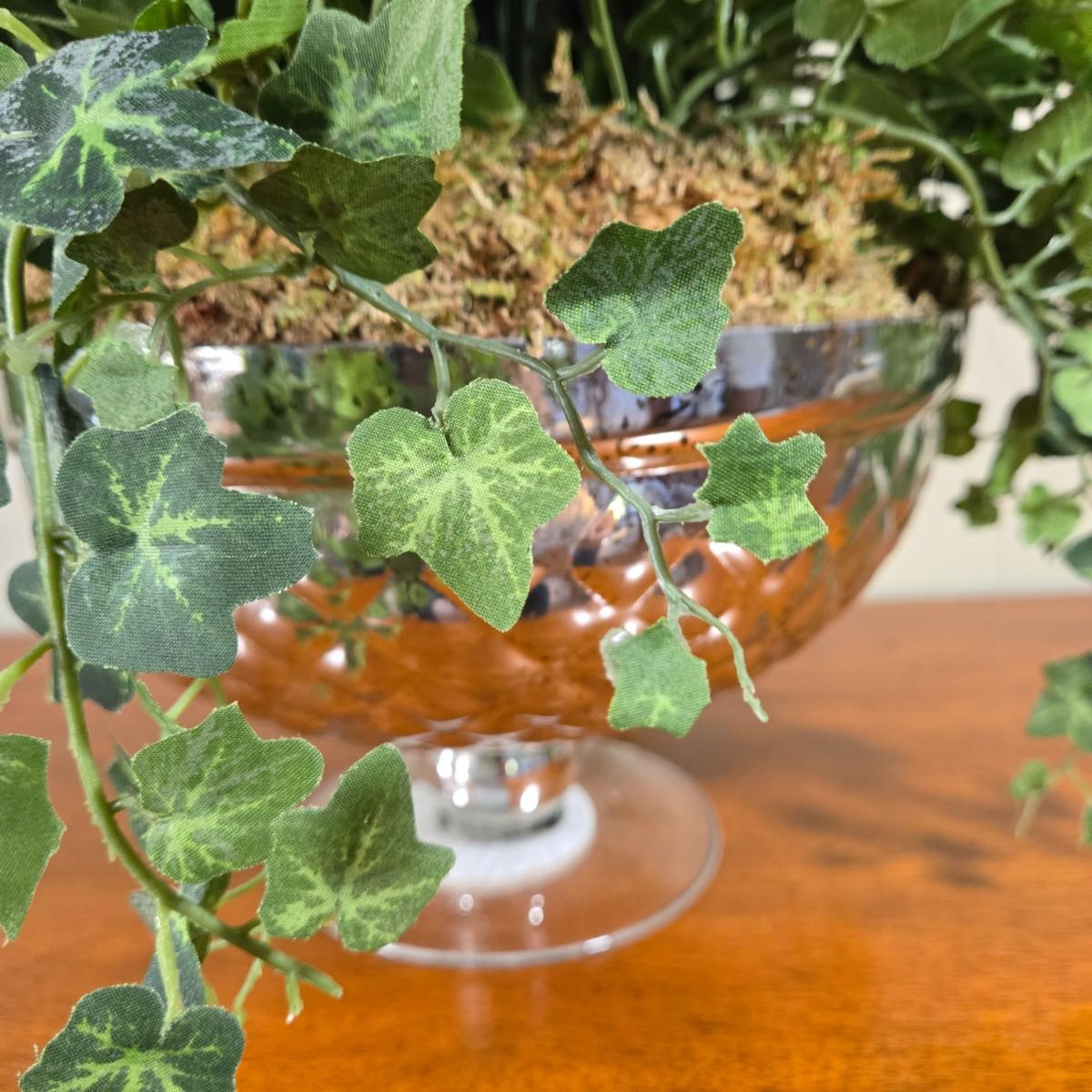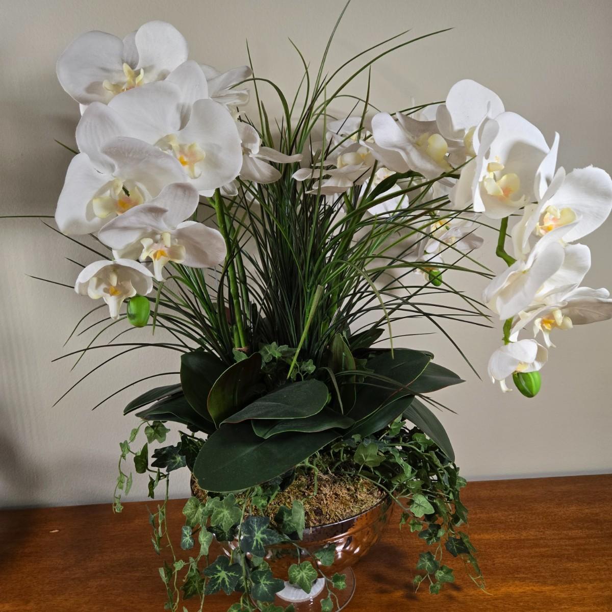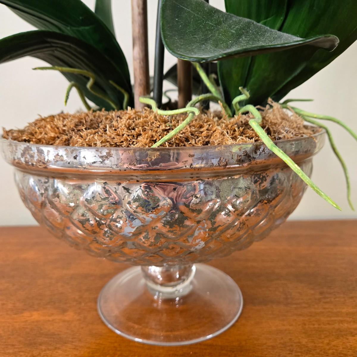 LOT 209H: Two Silk Arrangements in Glass Bowls and Decorative Mirror with Ornate Frame
