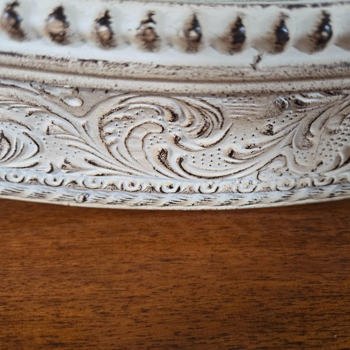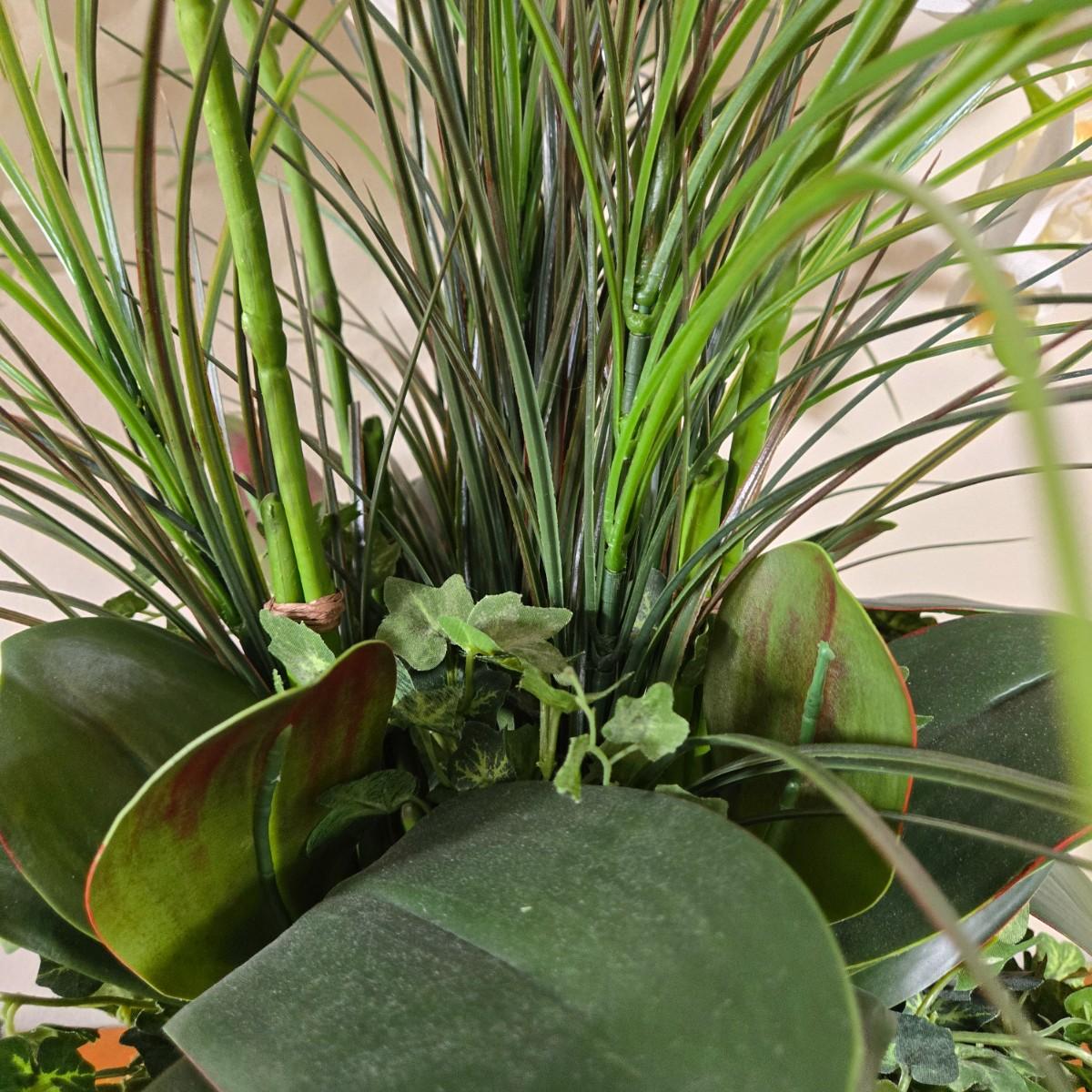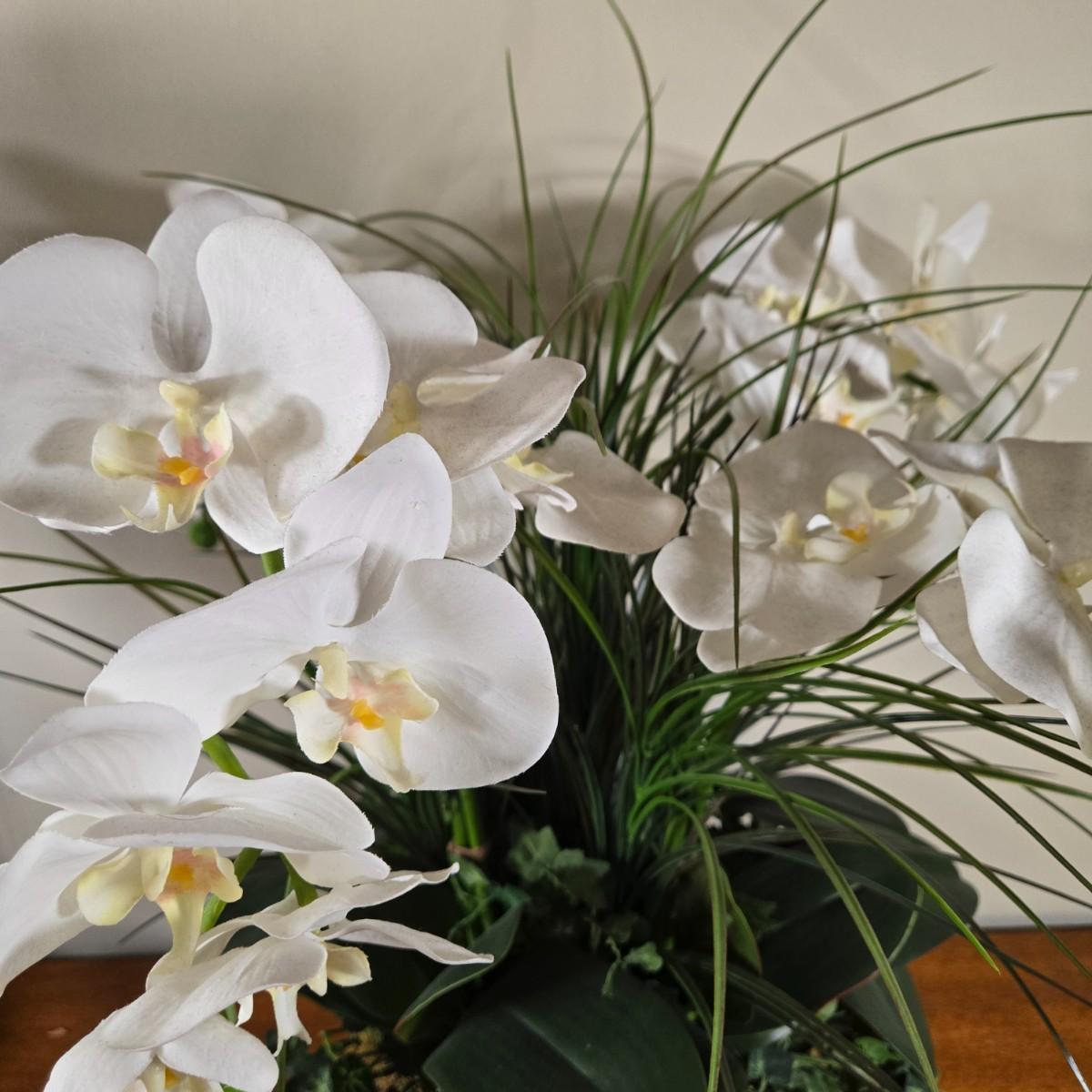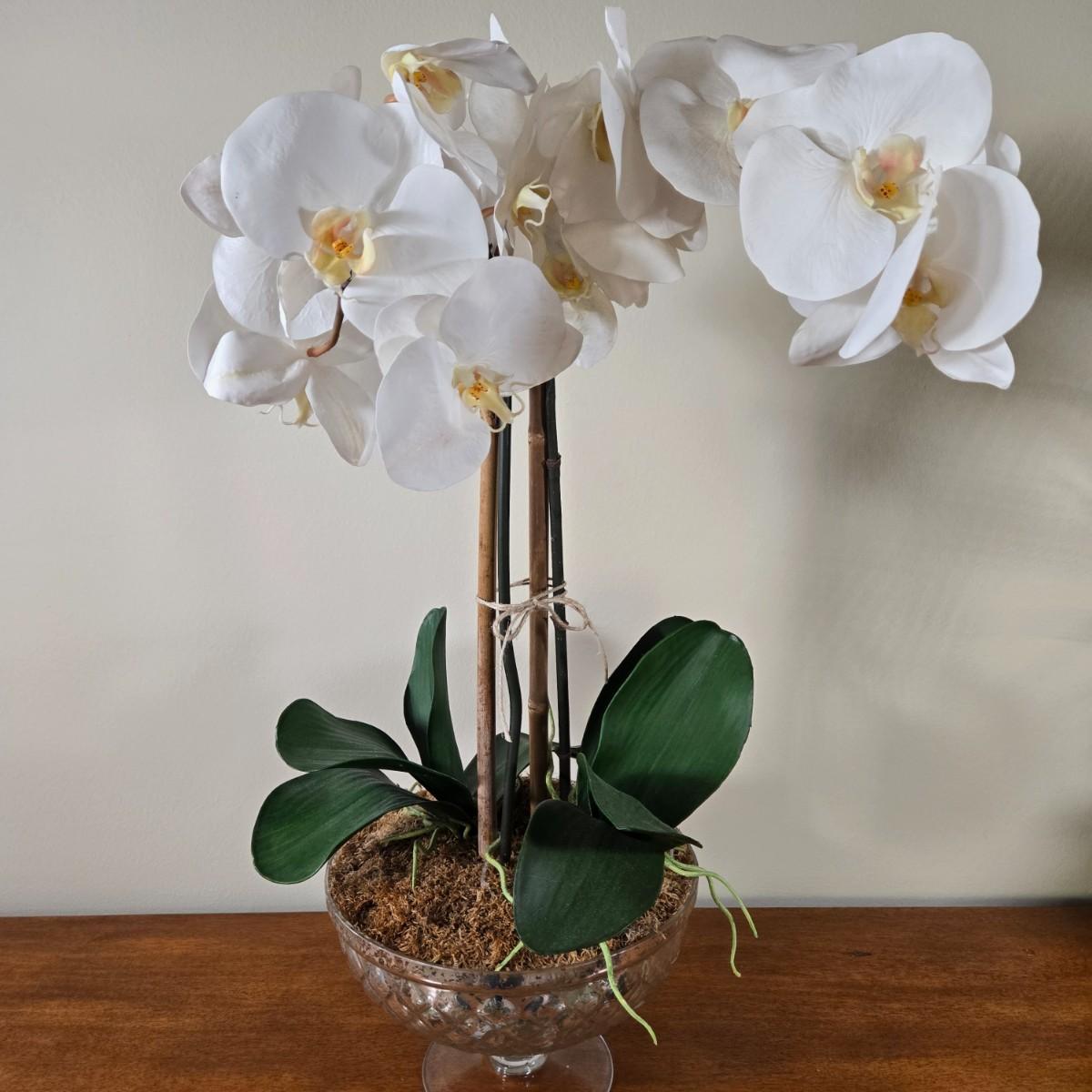 LOT 209H: Two Silk Arrangements in Glass Bowls and Decorative Mirror with Ornate Frame