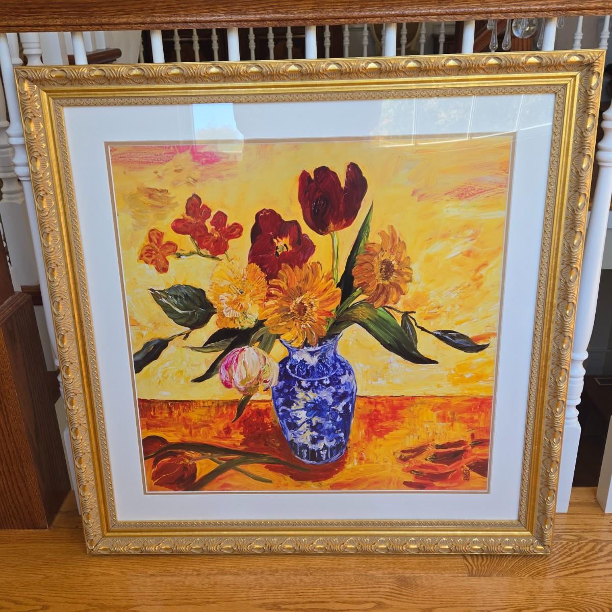 LOT 227H: Floral Print in Ornate Gold-tone Frame