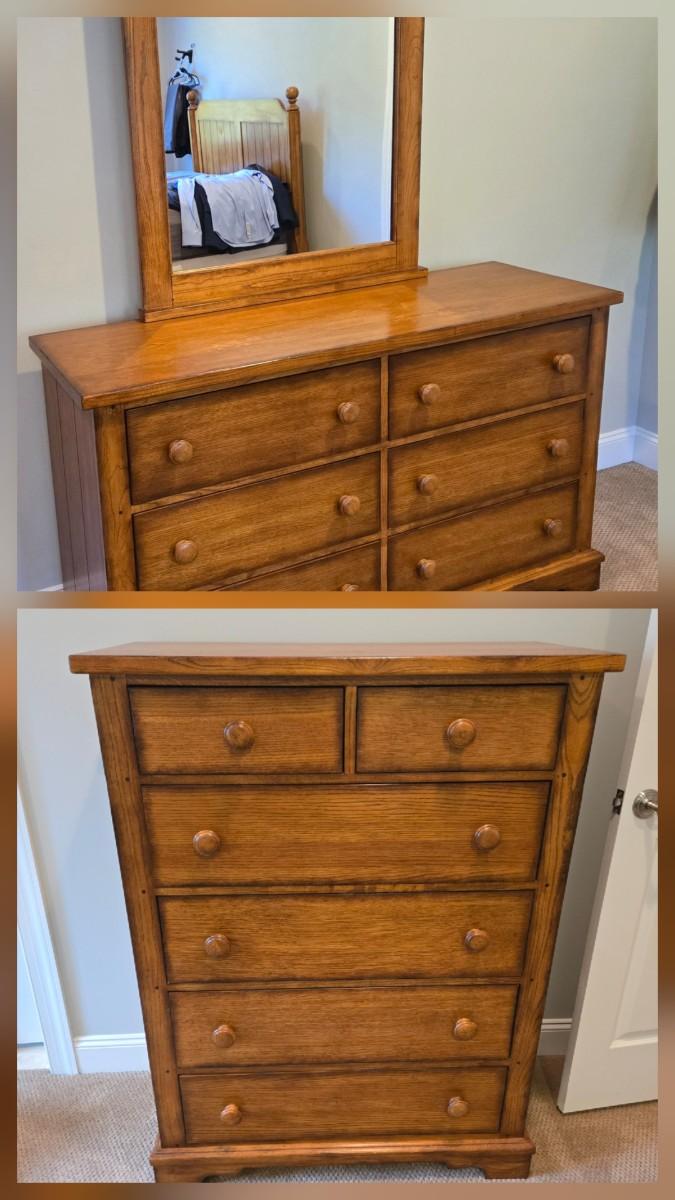 LOT 235X: Wood Dresser with Mirror and Chest of Drawers