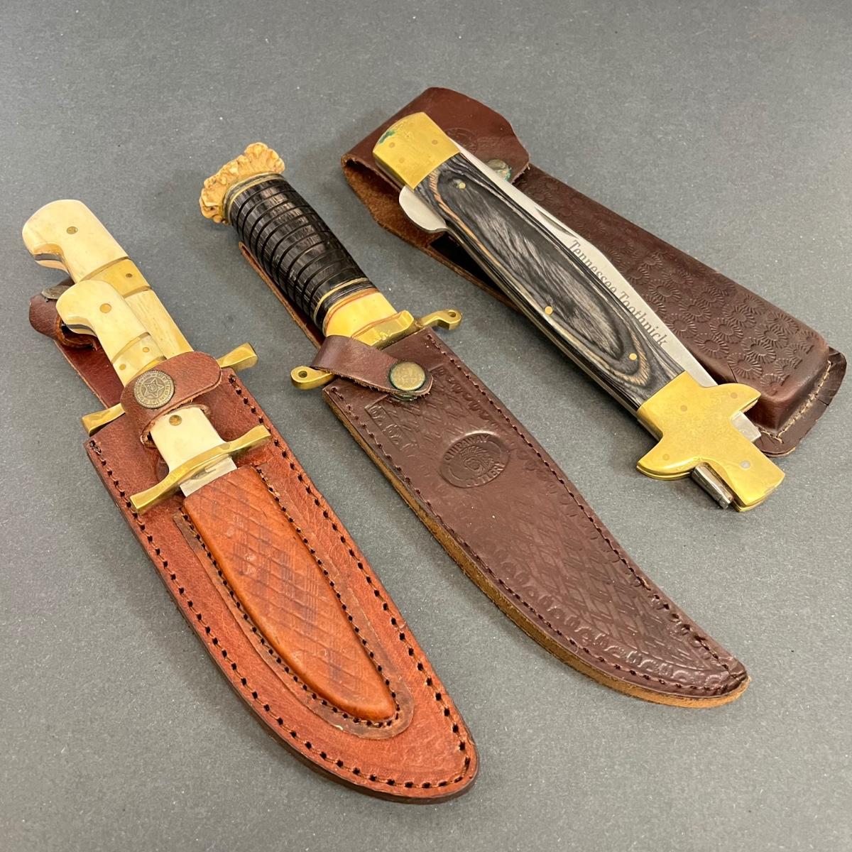LOT 28: Collection of Knives with Sheaths - Tennessee Toothpick Large Folding Knife and More