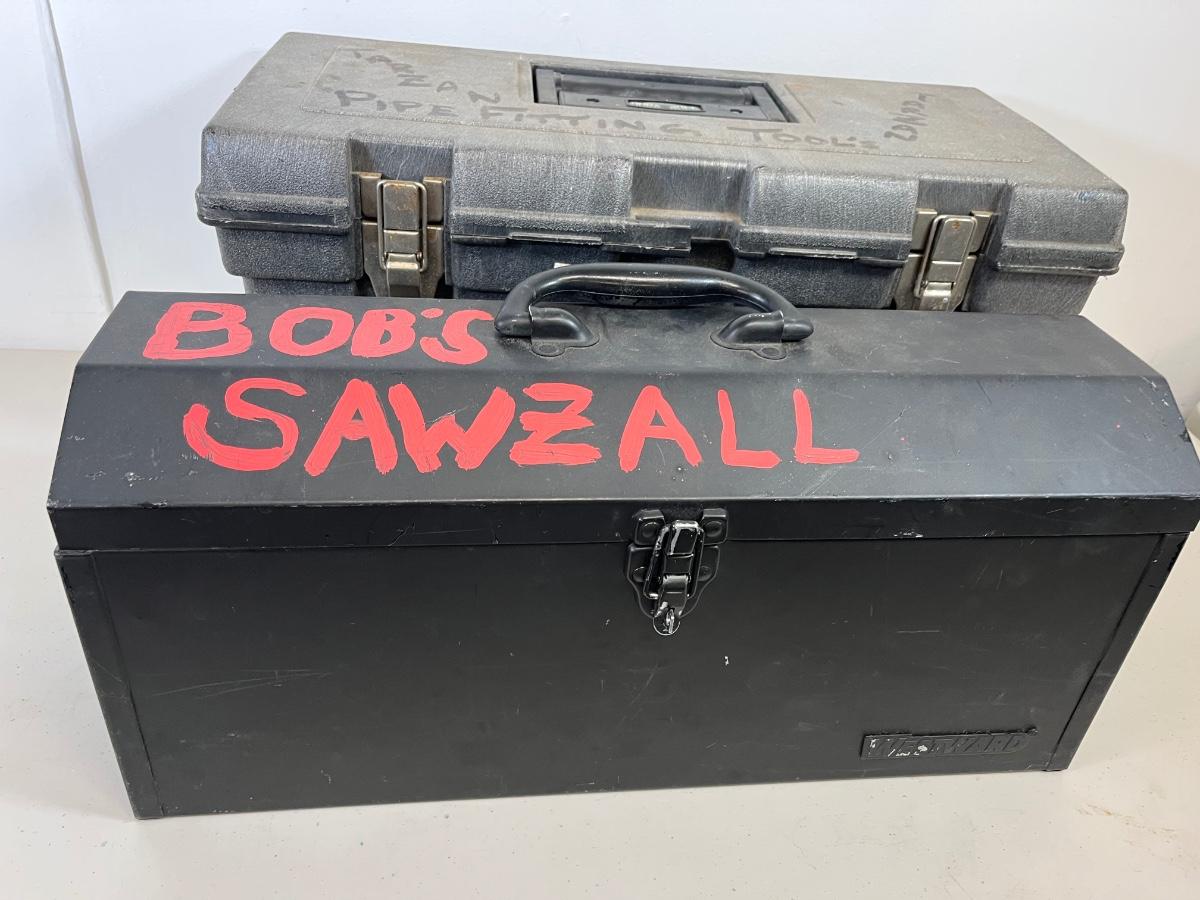 LOT 76: Two Tool Boxes with Hardware and Tools, Including Porter Cable Sawzall