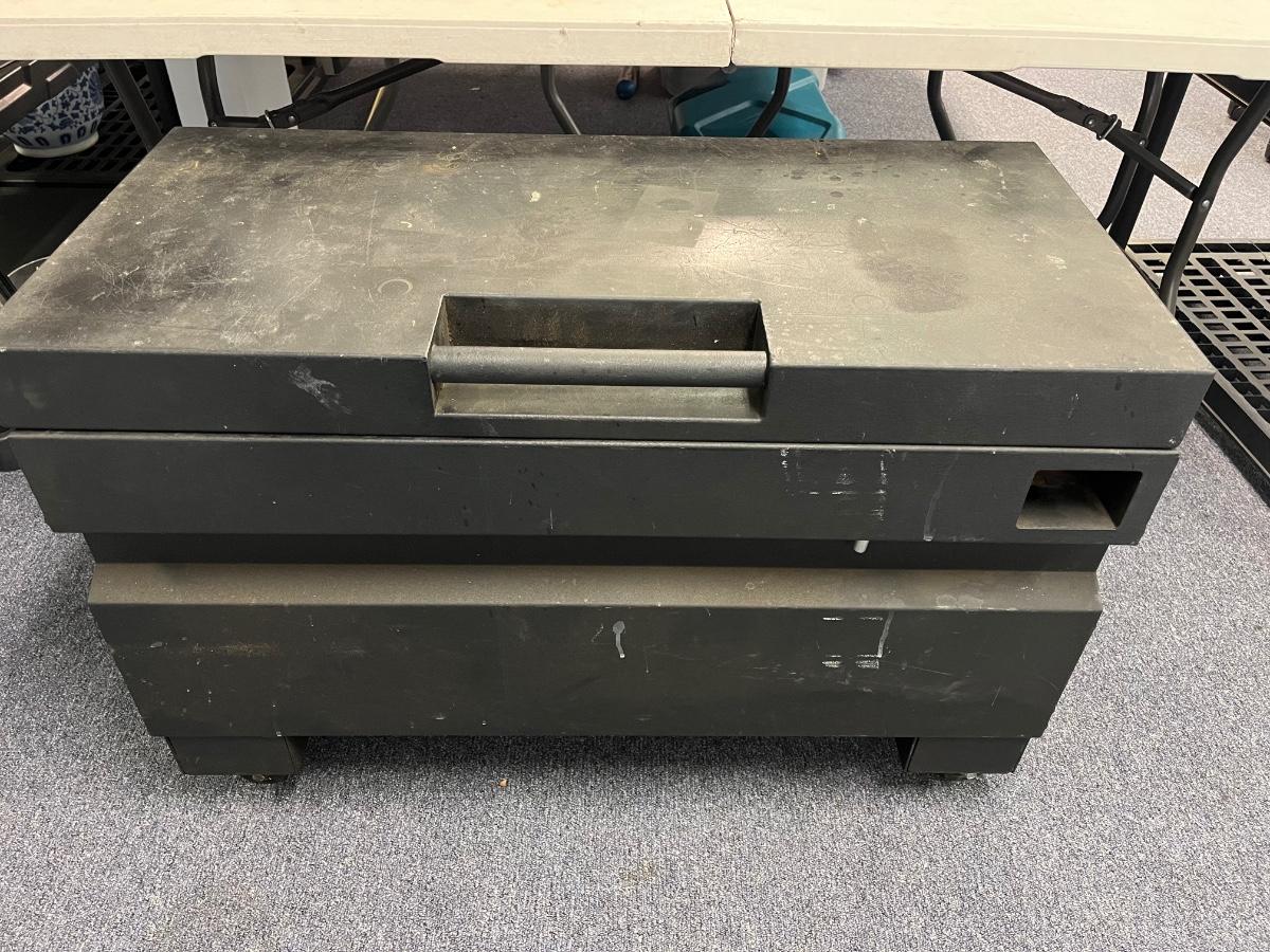LOT 80: Metal Tool Storage Chest on Wheels