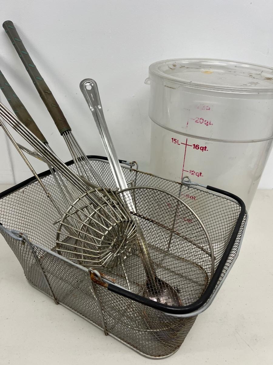 LOT 85: Deep Fryer Utensils and Plastic Measuring Container