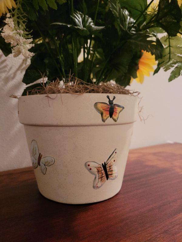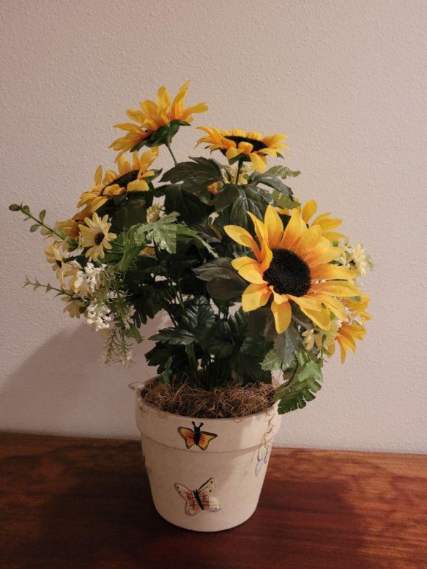 Lot 123: Faux Sunflowers in a Raised Butterfly Planter