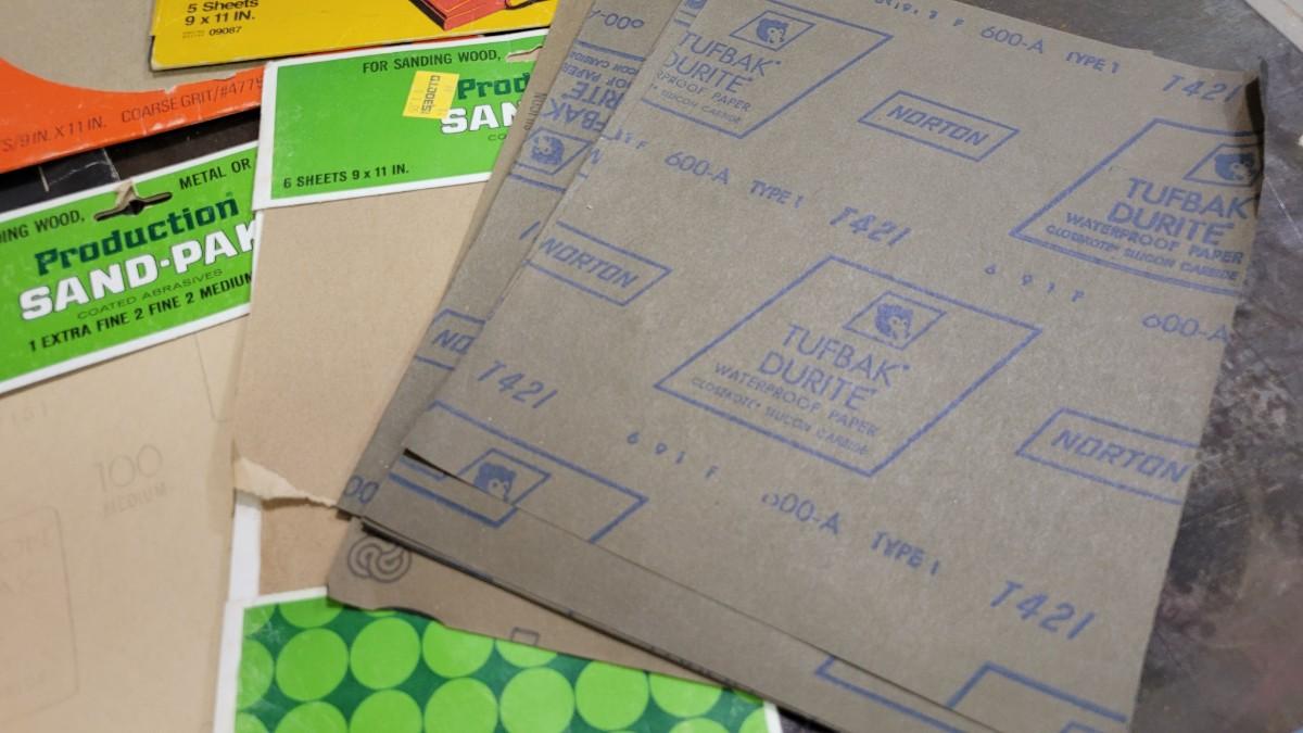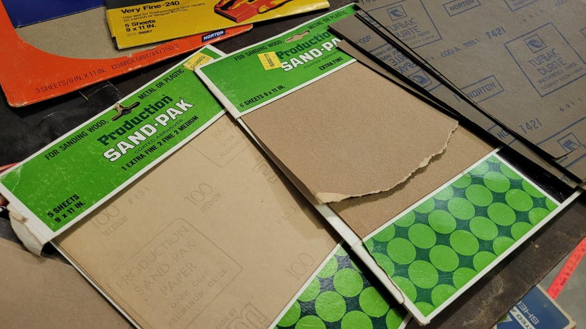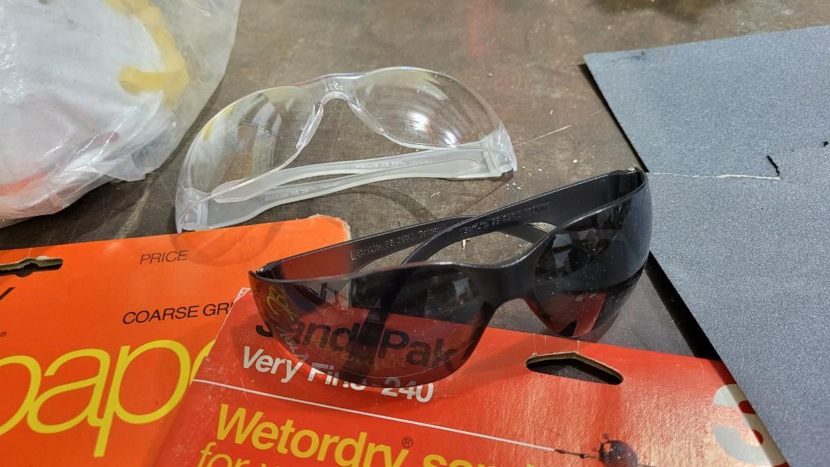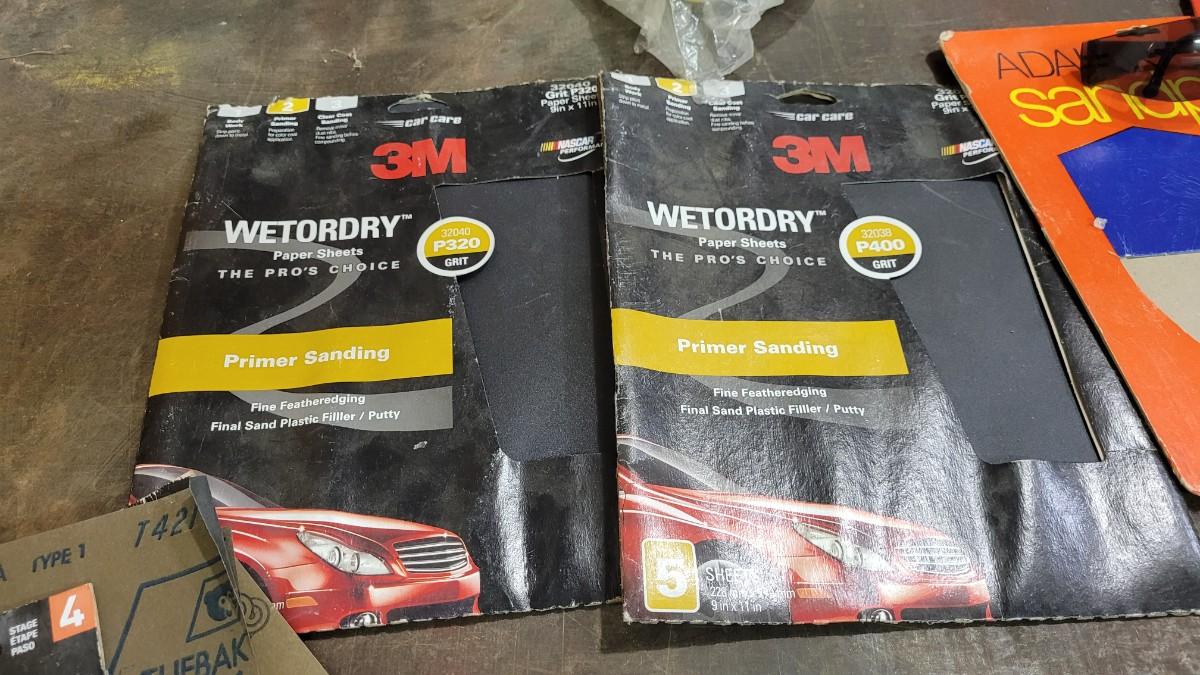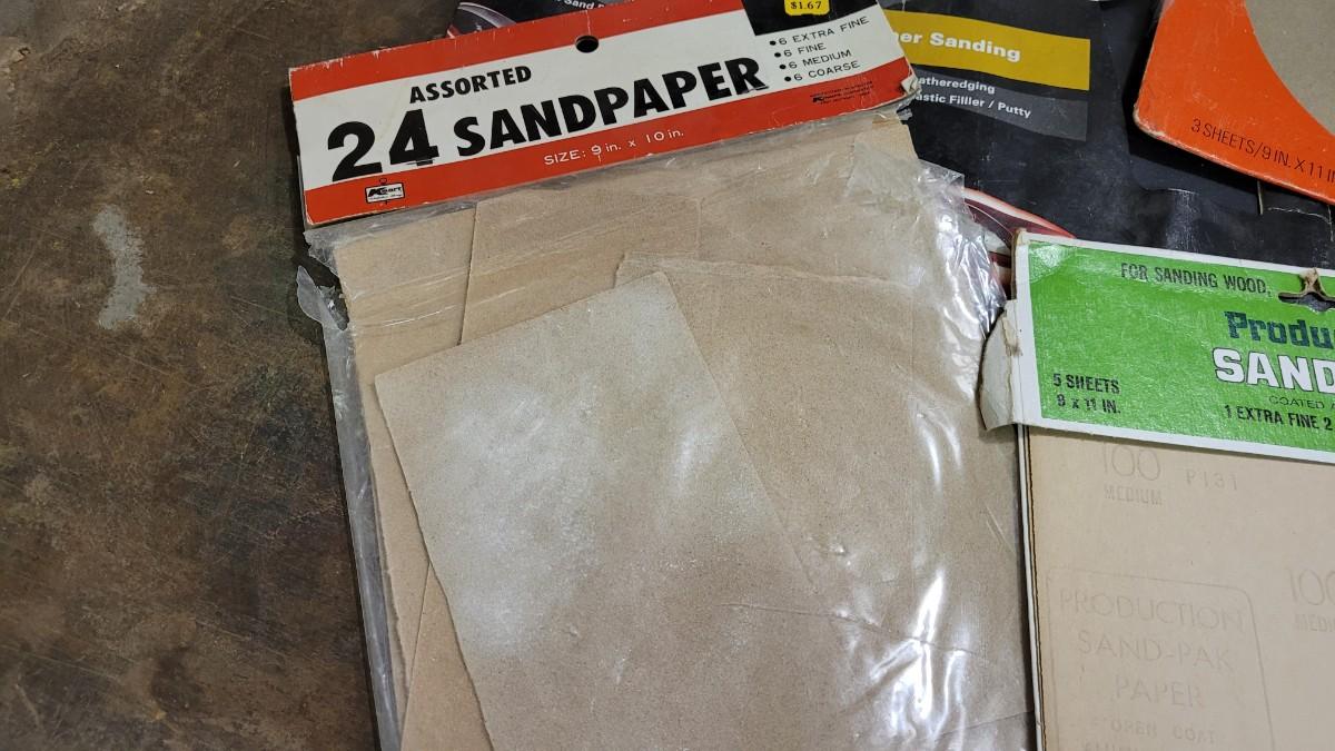 Lot 128: Assorted Sandpaper Packs + (2) Safety Glasses and Pack of Dust Masks