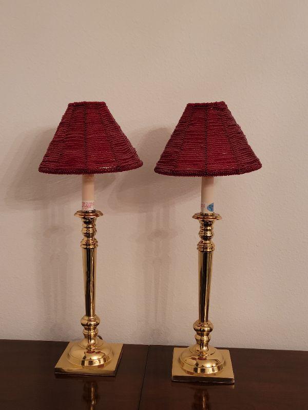 Lot 128: (2) Brass Lamps with Beaded Shade 18" tall