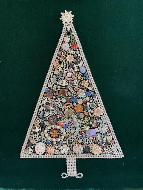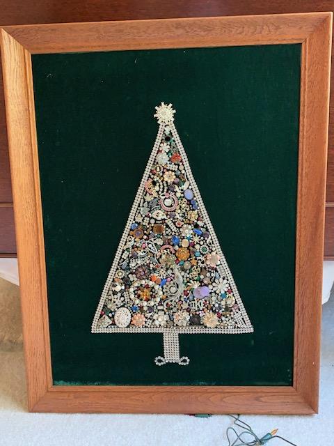Framed Christmas Tree made out of misc jewelry, 21 x 27