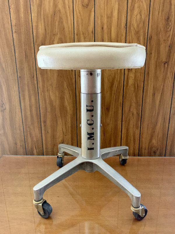 LOT 131 MCM INDUSTRIAL METAL STOOL I.M.C.U. ADJUSTABLE HEIGHT