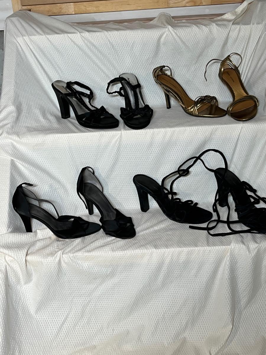 Lot 148 4 pairs of shoes - 3 black, 1 bronze, dressy shoes