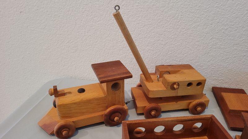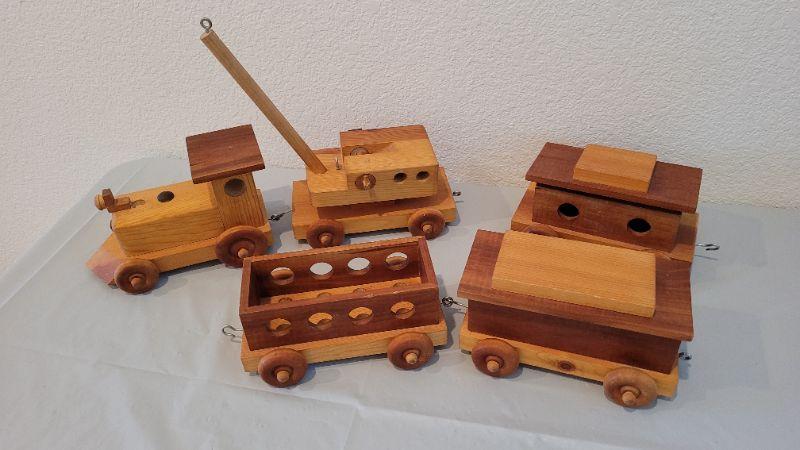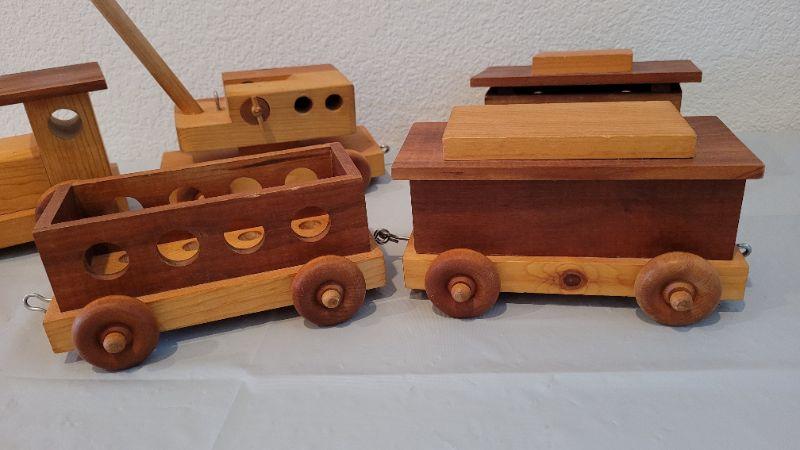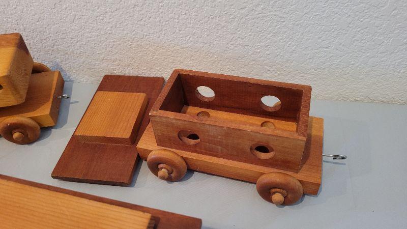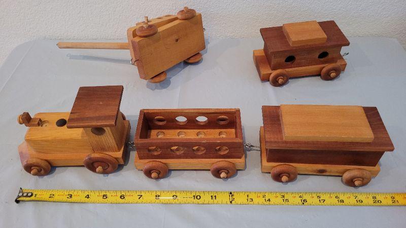 Lot 15: Vintage 5-Piece Handmade Wood Train Set