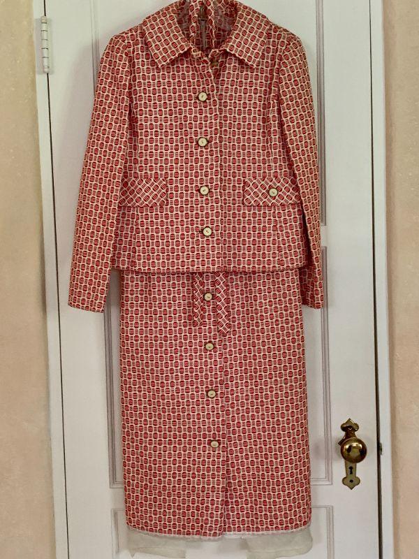 LOT 152 VINTAGE POLYESTER TEXTURED PRINT DRESS & JACKET SET