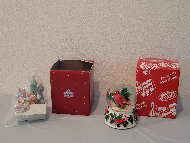 Lot 153: New Flavia Weedn Music Box and San Francisco Music Co Red Bird Water Globe and