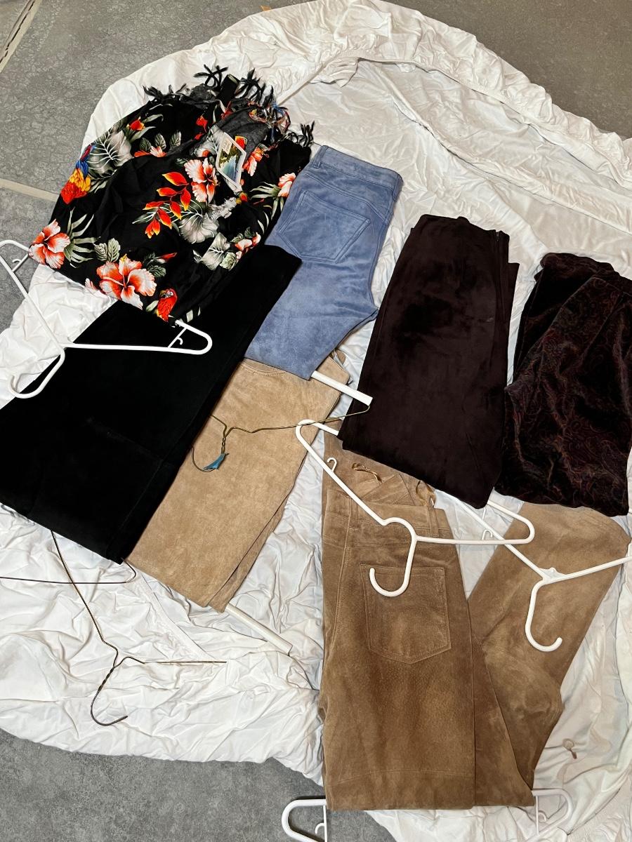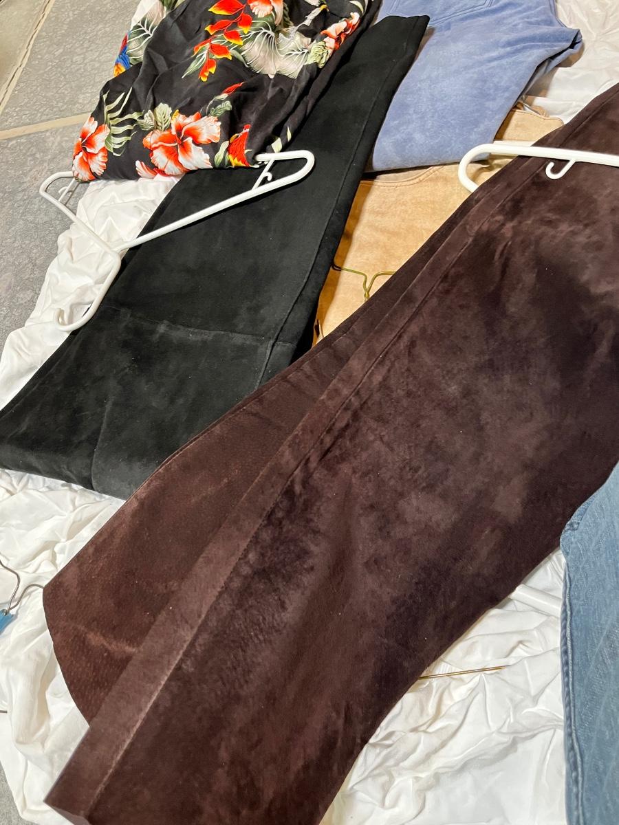 Lot 158 8 pairs of leather and suede pants and a floral wrap skirt