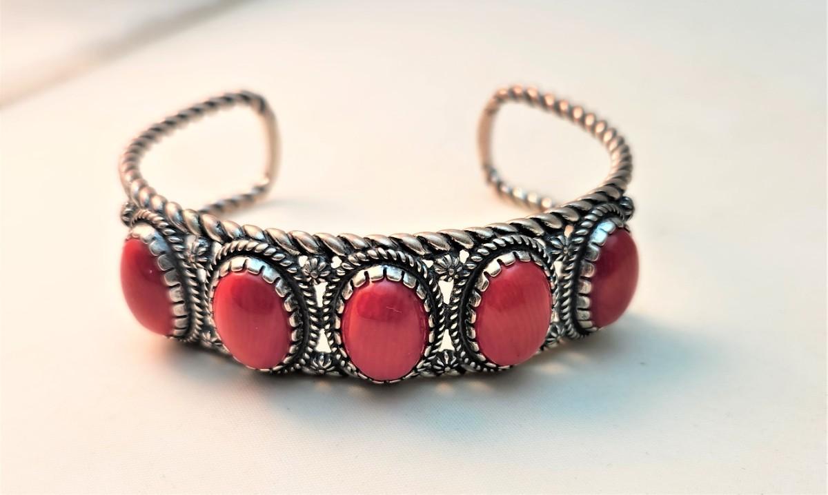 Pretty sterling silver (marked) cuff bracelet in the Southwestern Style - stone is likely Carnelian. Grear condition,